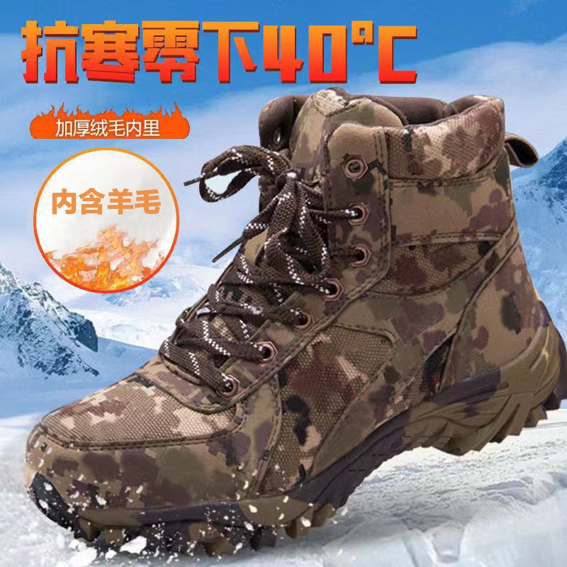 冬季新款劳保鞋棉鞋男保暖羊毛靴防滑工作鞋耐磨登山鞋高帮棉鞋子