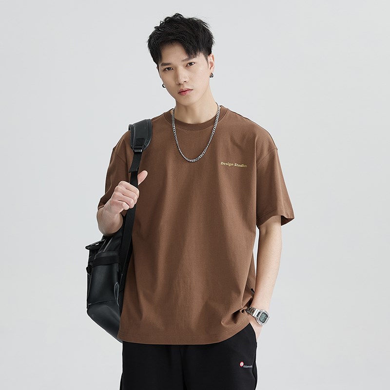 2025年新款帅气简单款短袖T恤男胖人加肥加大码宽松半袖纯色体恤