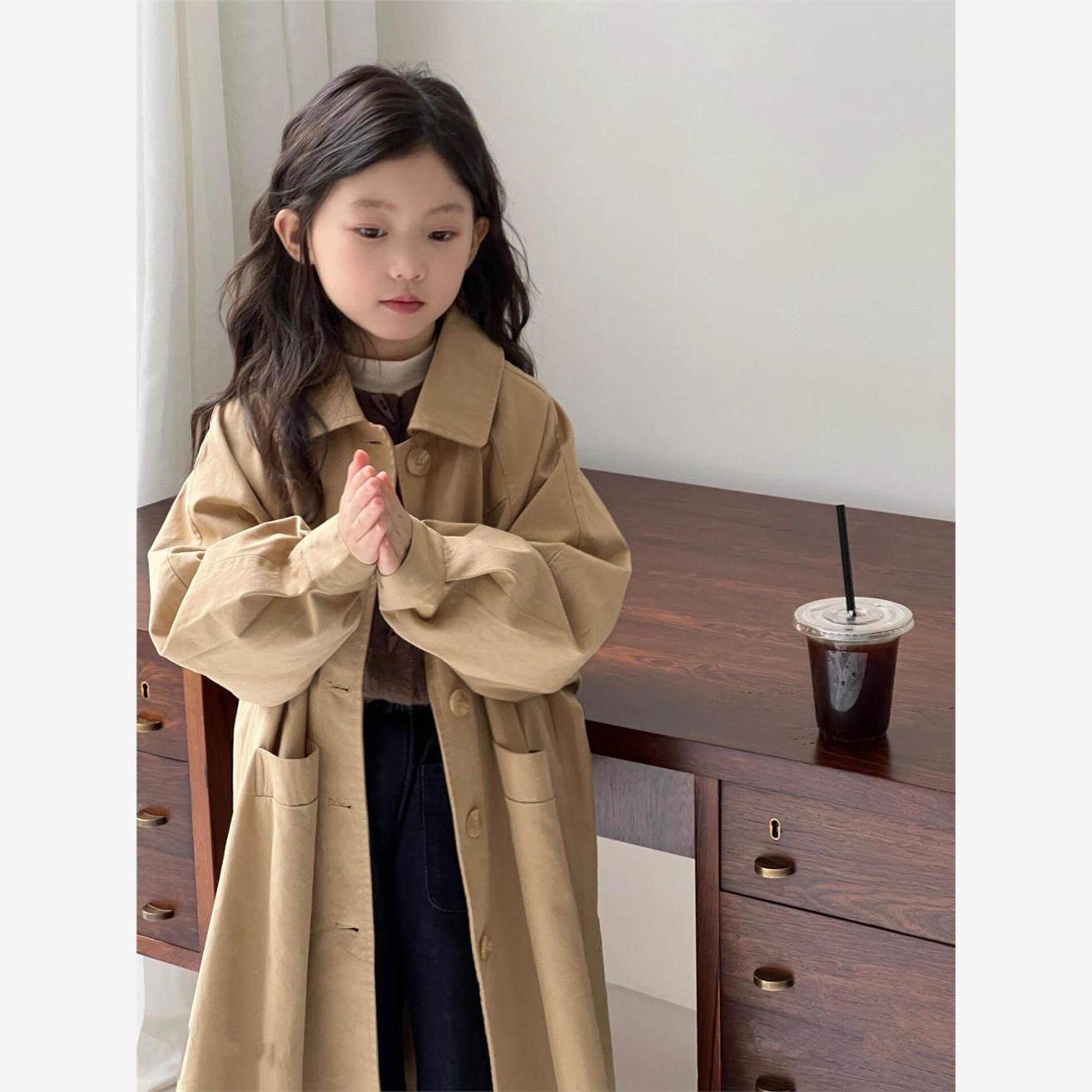 女童风衣女孩春秋新款女童洋气时髦春装英伦风女大童长款大衣外套