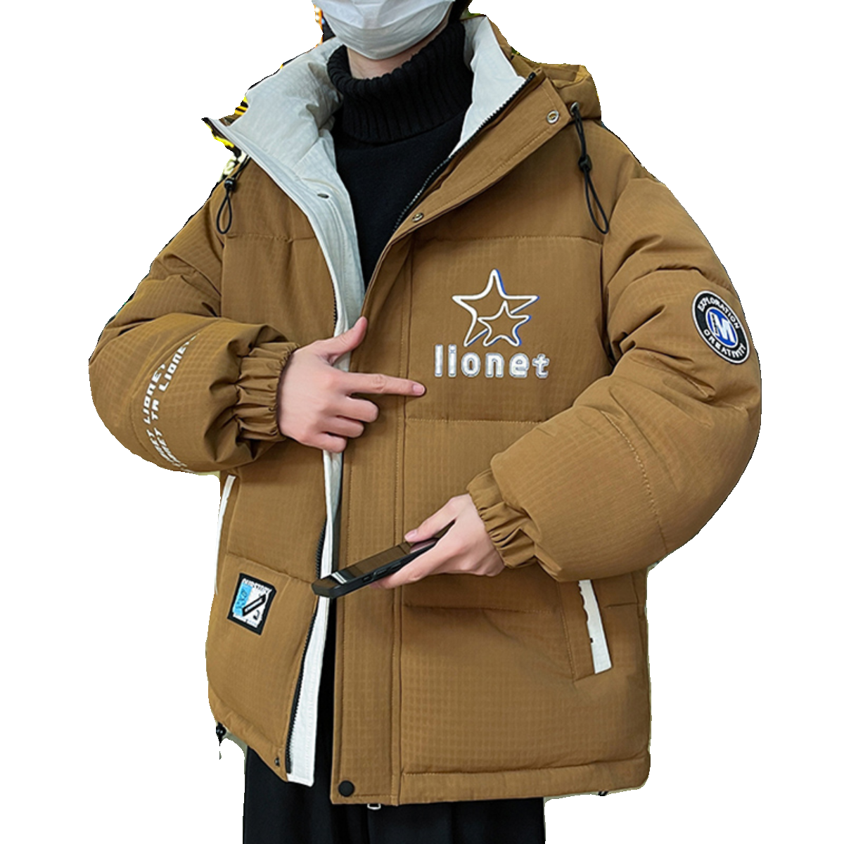 潮牌连帽休闲短款拼色羽绒服