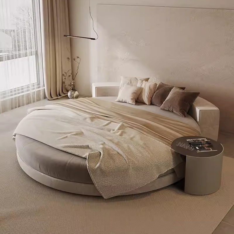 GLAMOUR意式极简布艺圆床双人床北欧现代简约奶油风磨砂布软床
