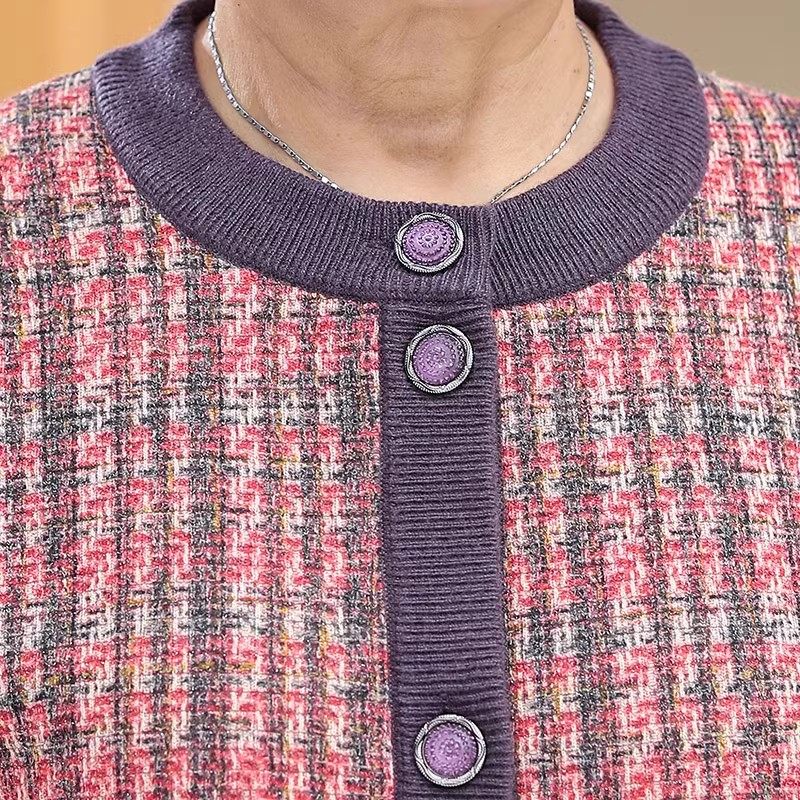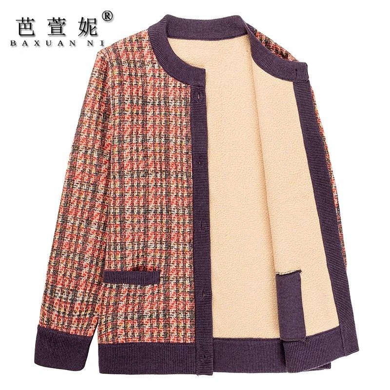 中老年人外套女秋冬加绒毛衣外套