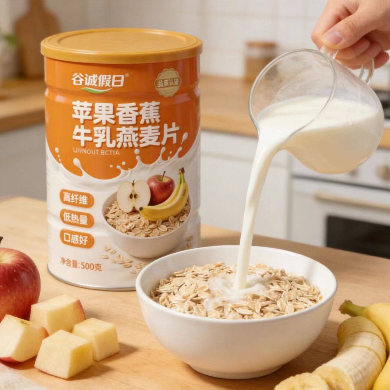 苹果香蕉牛乳燕麦片免煮无糖水果燕麦片冲泡学生早餐饱腹高纤维