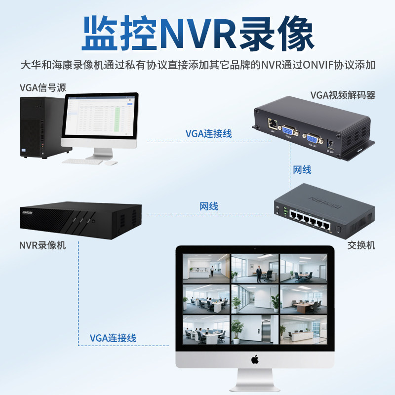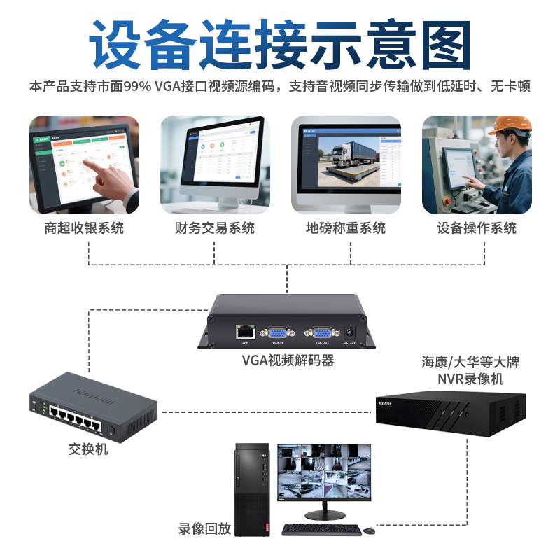 HDMI录屏器 VGA高清H.265编码 电脑/收银机 监控解码兼容海康NVR