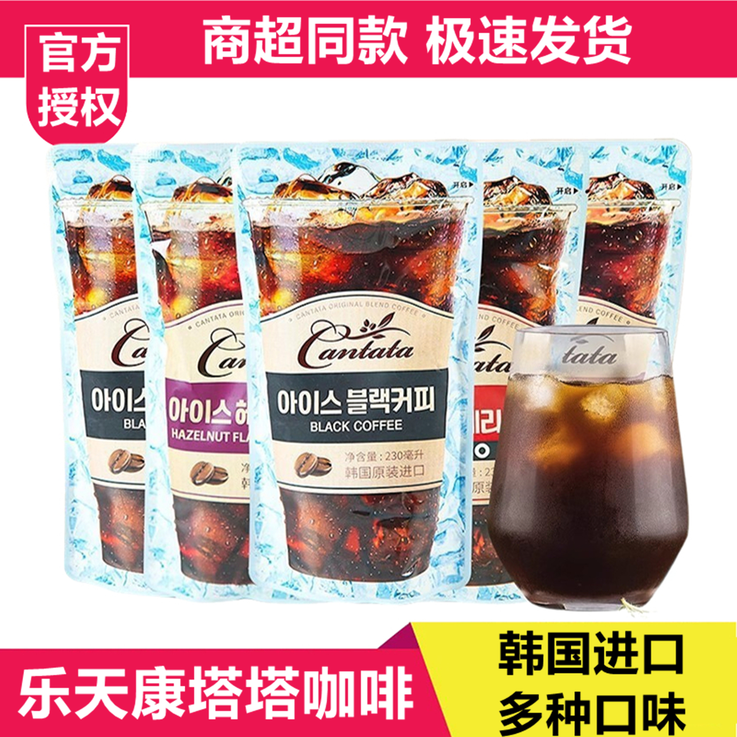 韩国进口乐天cantata康塔塔拿铁美式榛果黑咖啡饮料袋装即饮饮品