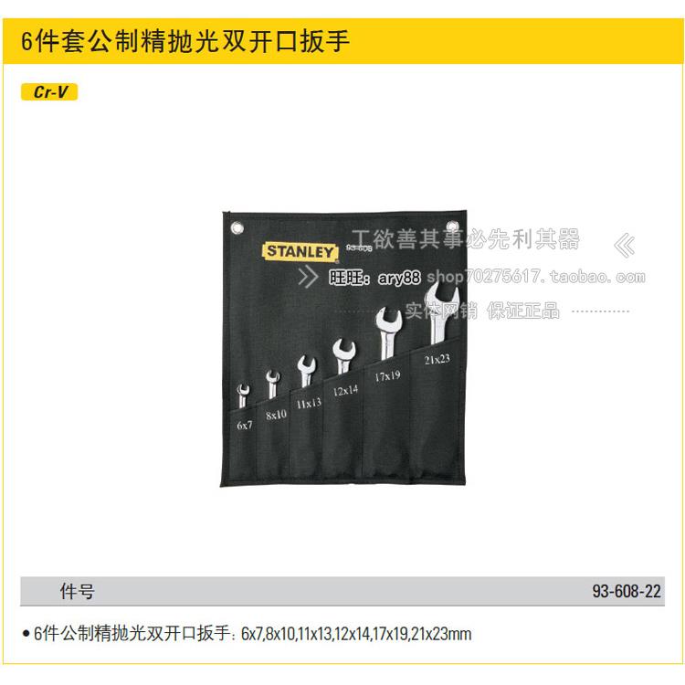 STANLEY/史丹利 6件套公制精抛光双开口扳手 93-608-22 扳手组套