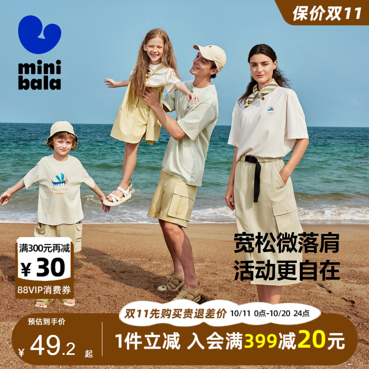 迷你巴拉巴拉男童女童短袖T恤2025夏季亲子装一家三口纯棉宝宝潮t