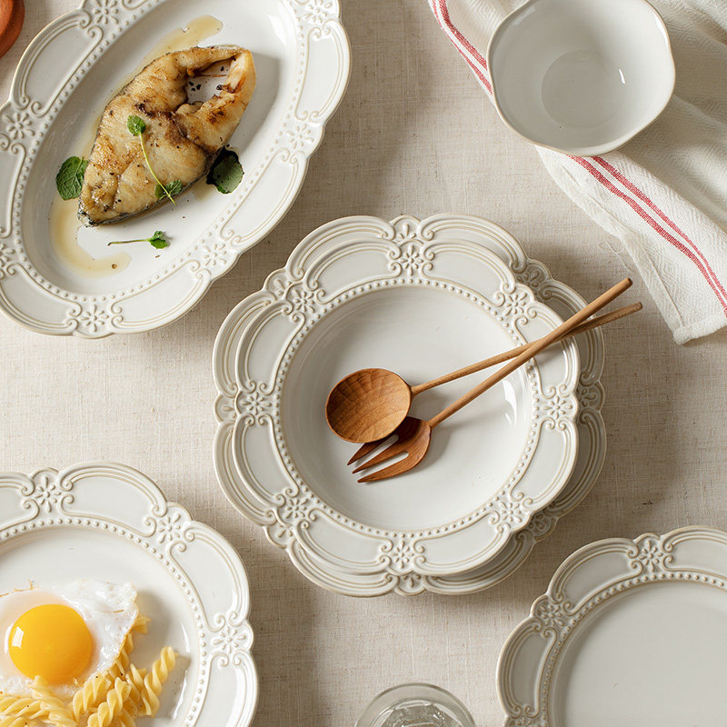 法式碗碟套装菜盘家用米饭碗陶瓷一人食高颜值特别好看的盘子餐具