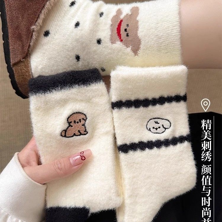 加厚澳绒保暖毛绒袜子可爱月子袜