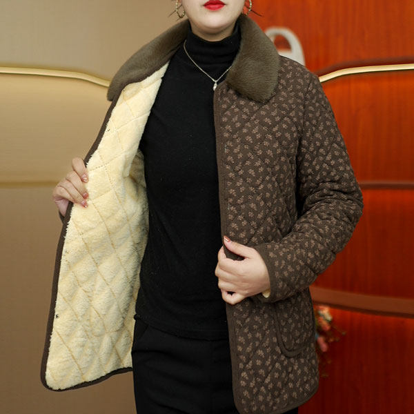 正品新款冬季毛领棉衣妈妈装时尚休闲加绒加厚保暖棉袄大码外套女