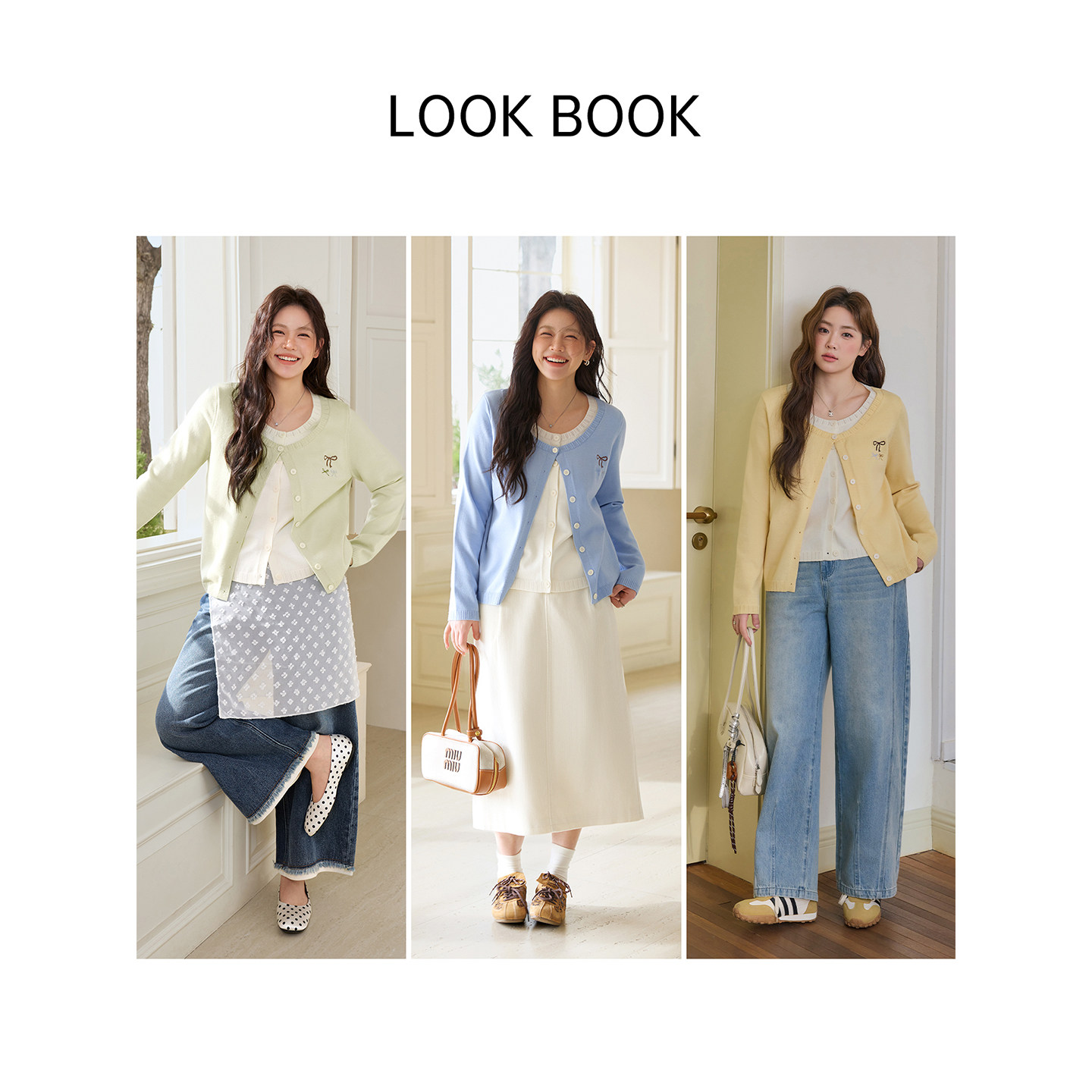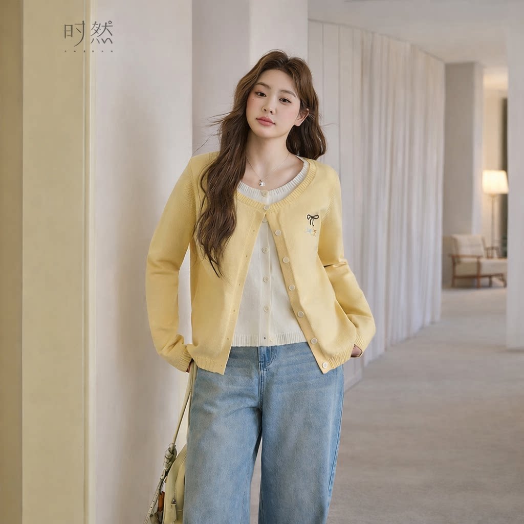 时然大码假两件针织衫微胖mm春季女装撞色长袖T恤新品刺绣开衫