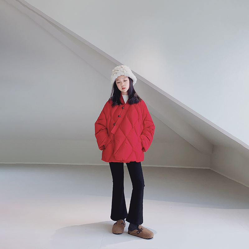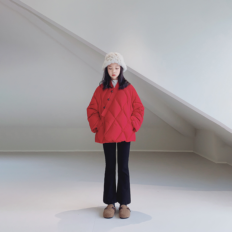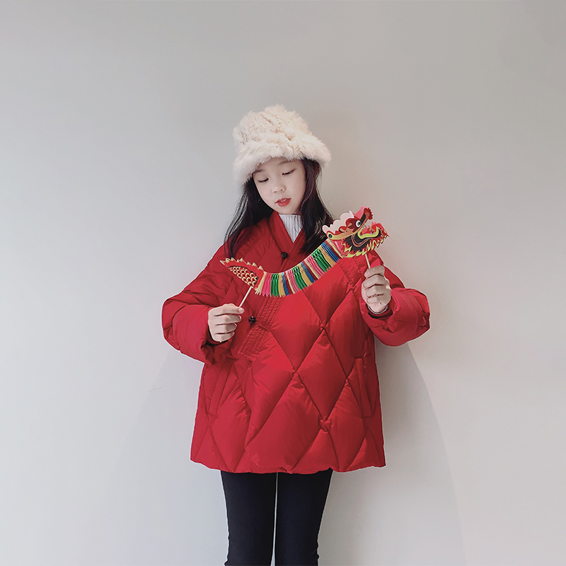 【宠粉折扣】女大童羽绒服冬装新款国潮风白鸭绒红色年款羽绒衣