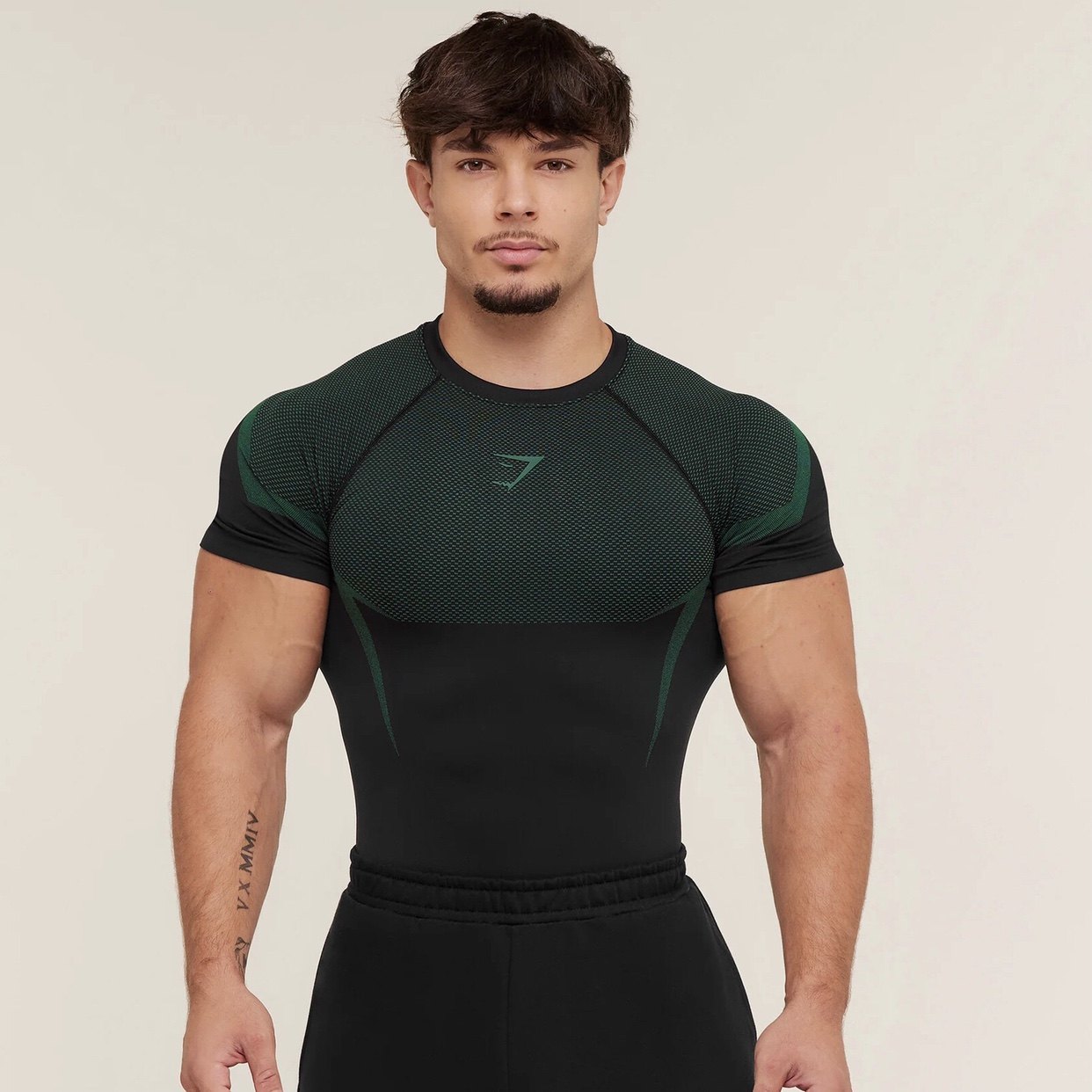美式无缝休闲训练健身男士短袖上衣运动跑步透气肌肉修身圆领T恤