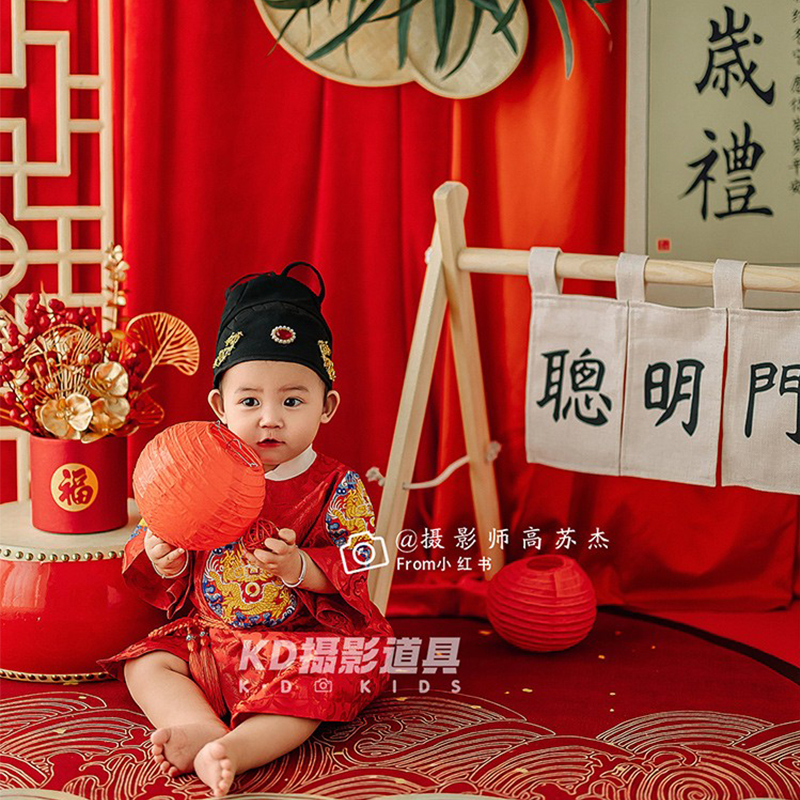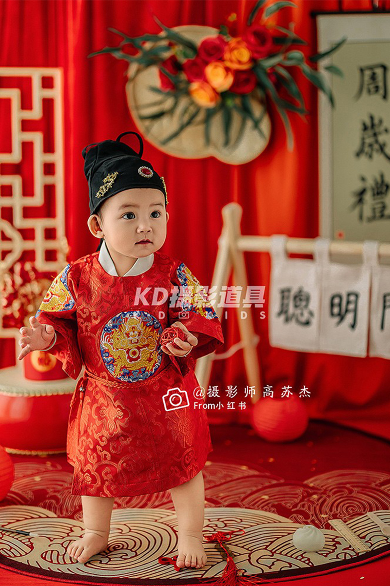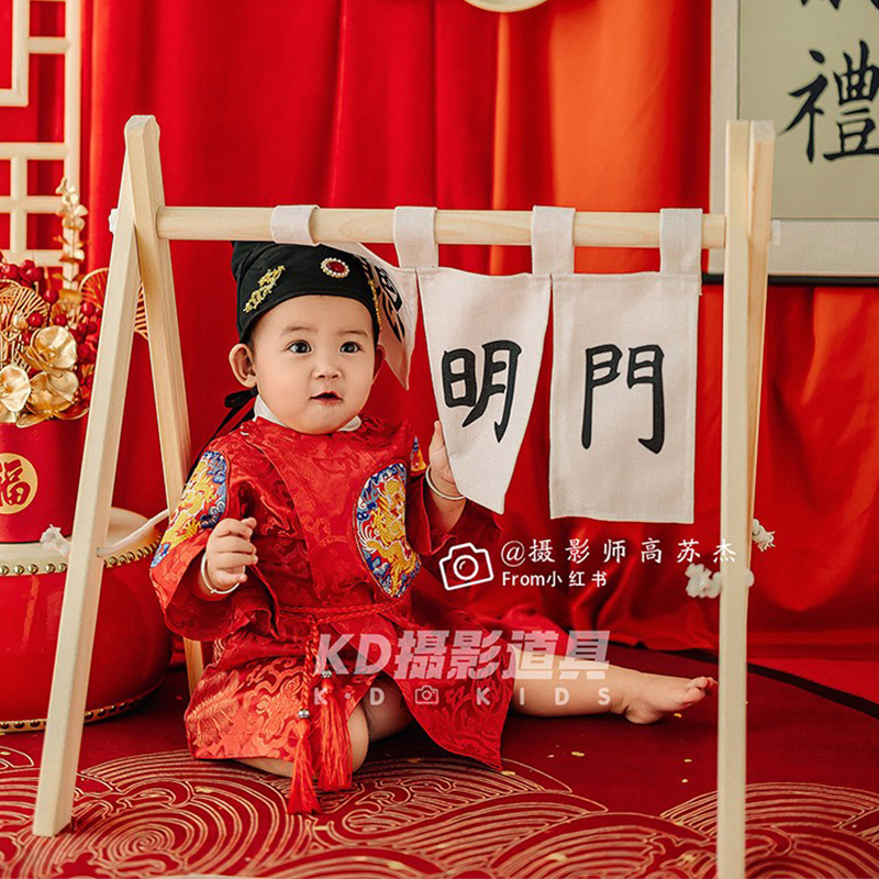 宝宝周岁礼喜庆主题摄影影楼道具 儿童中国风抓周小孩官服装新款