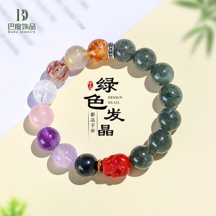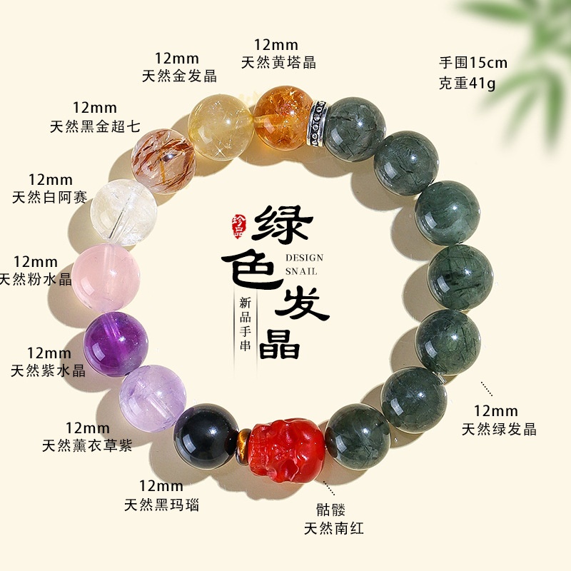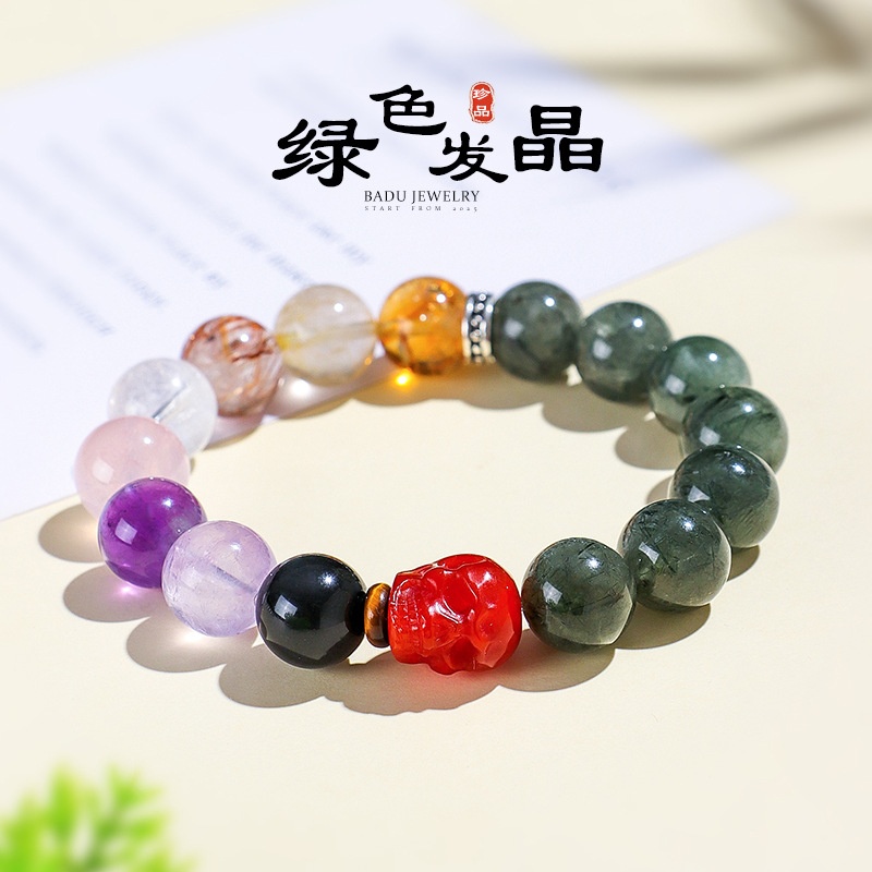 12mm天然绿发水晶多宝串珠手链女原创设计紫水晶南红骷髅手串