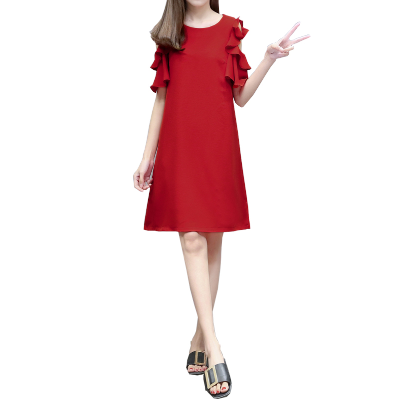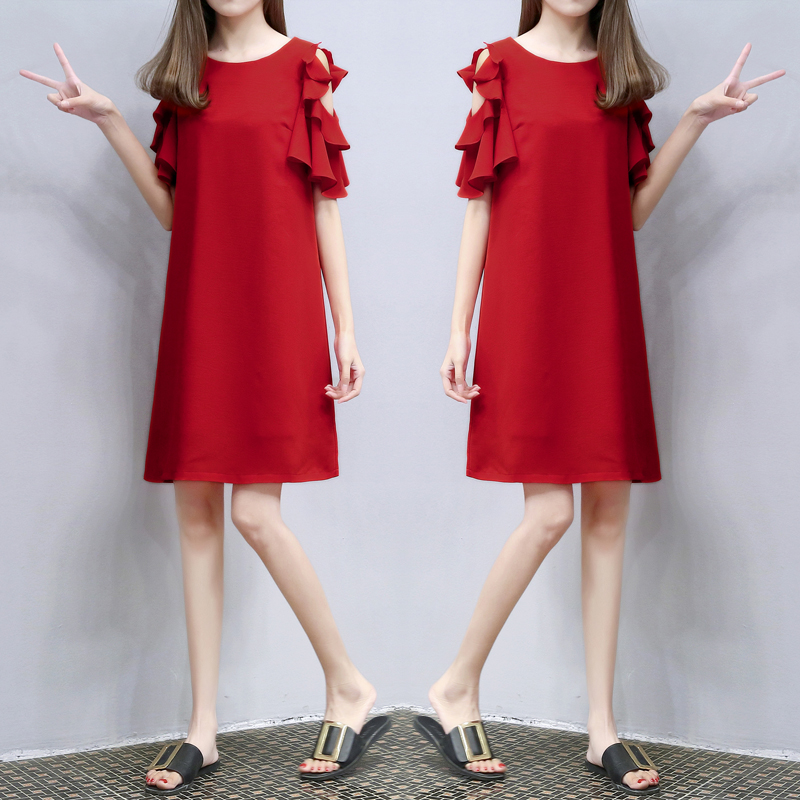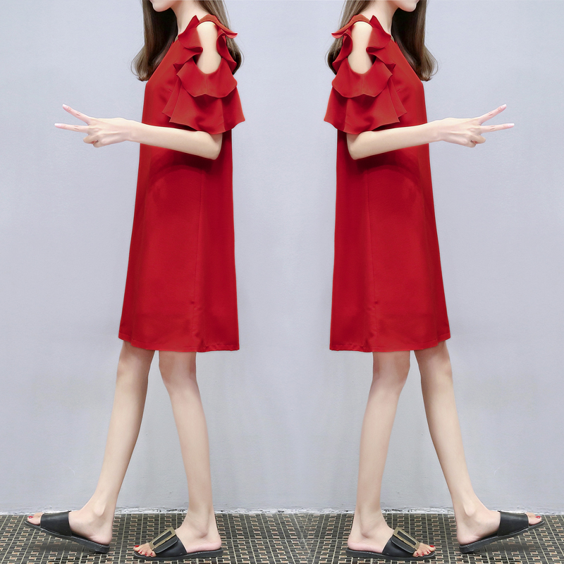 欧洲站2025夏季新款韩版大码露肩连衣裙时尚红色宽松气质A字裙女