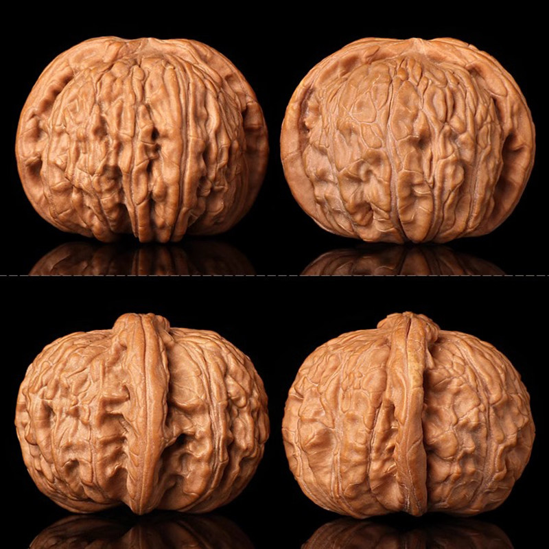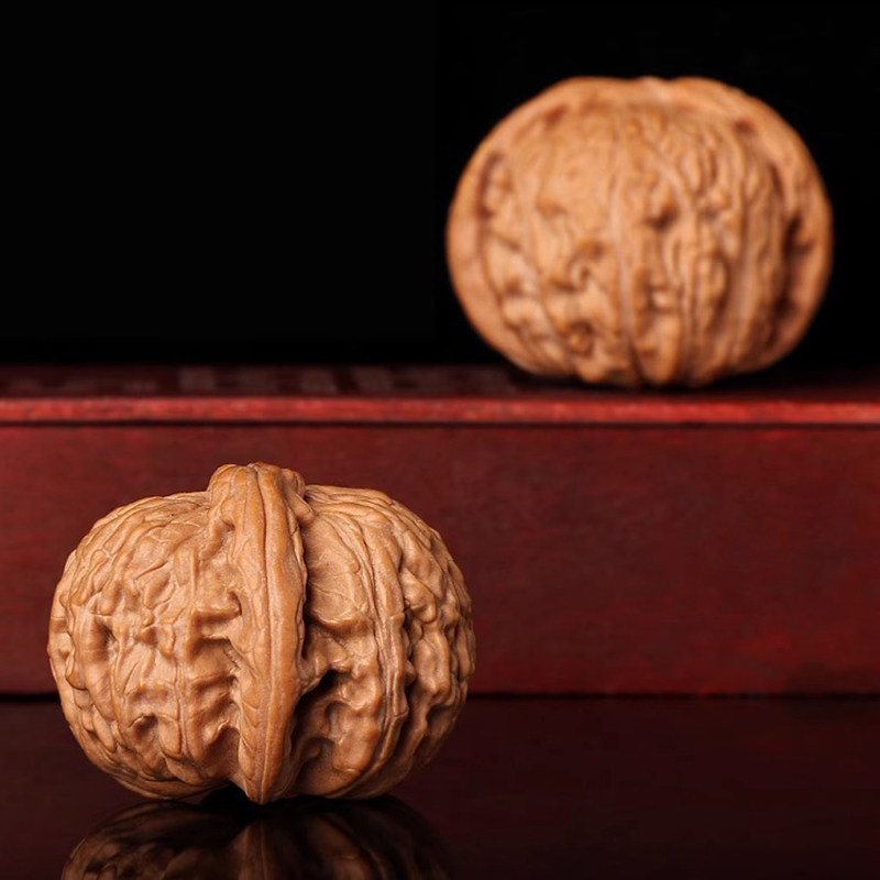 文玩闷尖白狮子头磨盘四座楼手捻核桃手把件涞水苹果园帝王老树