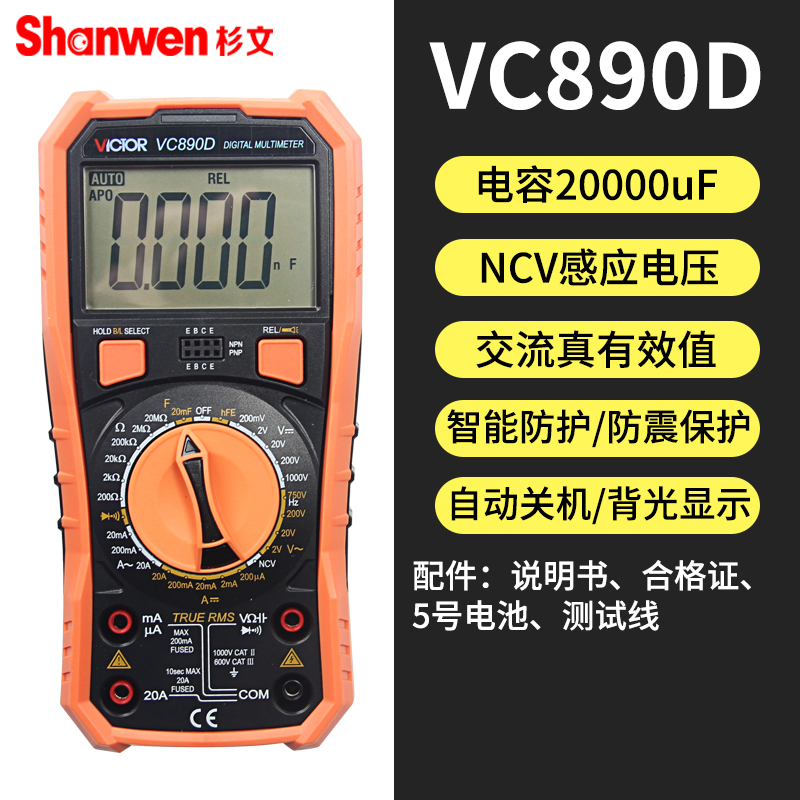 胜利万用表VC890D/C+数字高精度全自动电工万能表数显式万用表