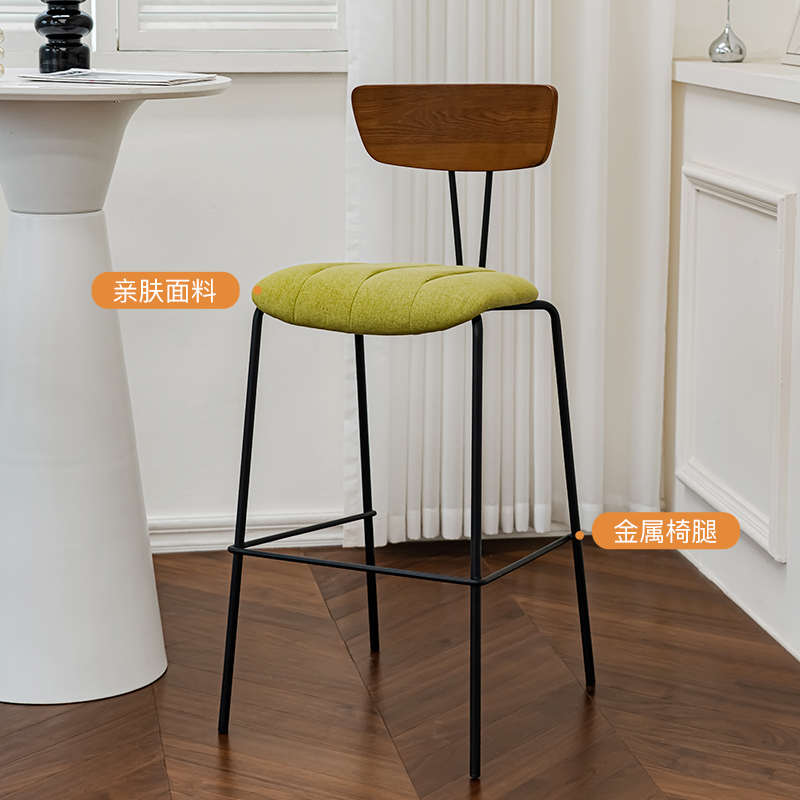 欧又北欧铁艺吧台椅现代简约家用轻奢高脚凳靠背网红咖啡厅高椅子