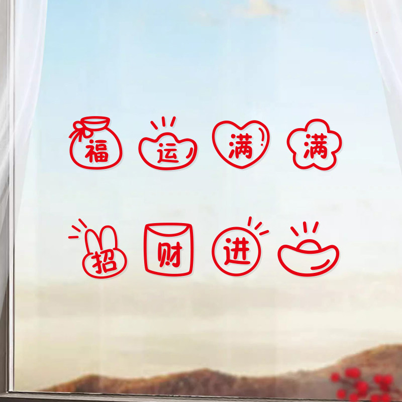 2026新款窗花新年贴纸氛围玻璃推拉门马年元旦布置春节装饰静电贴