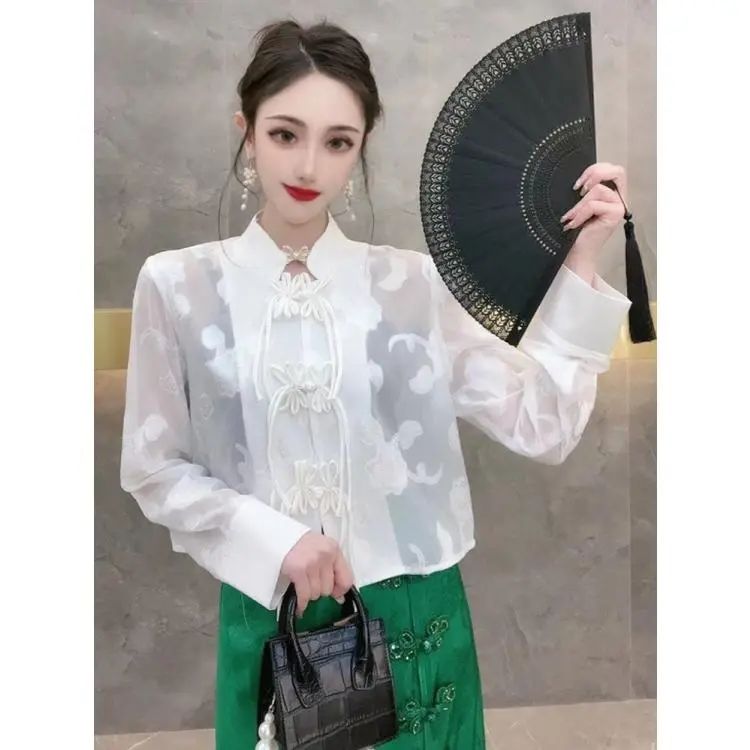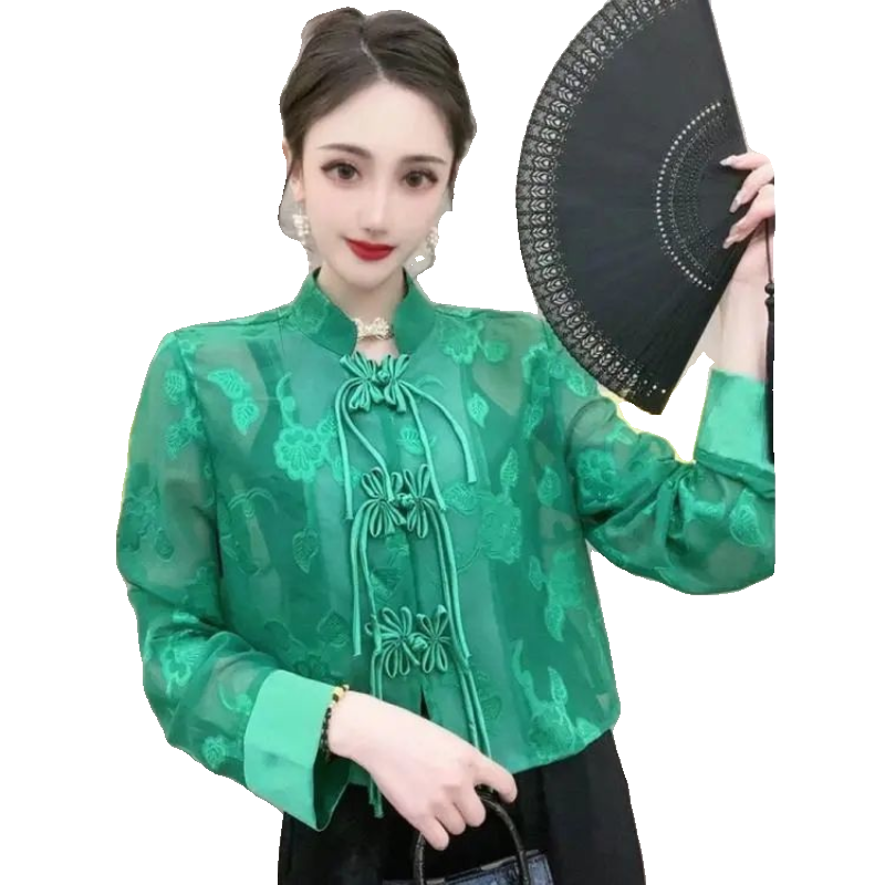 中式国风外套女复古立领盘扣提花防晒上衣改良国潮宽松洋气女装