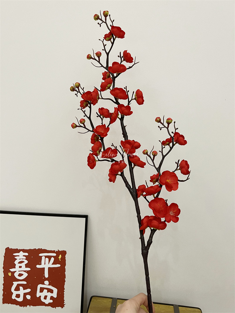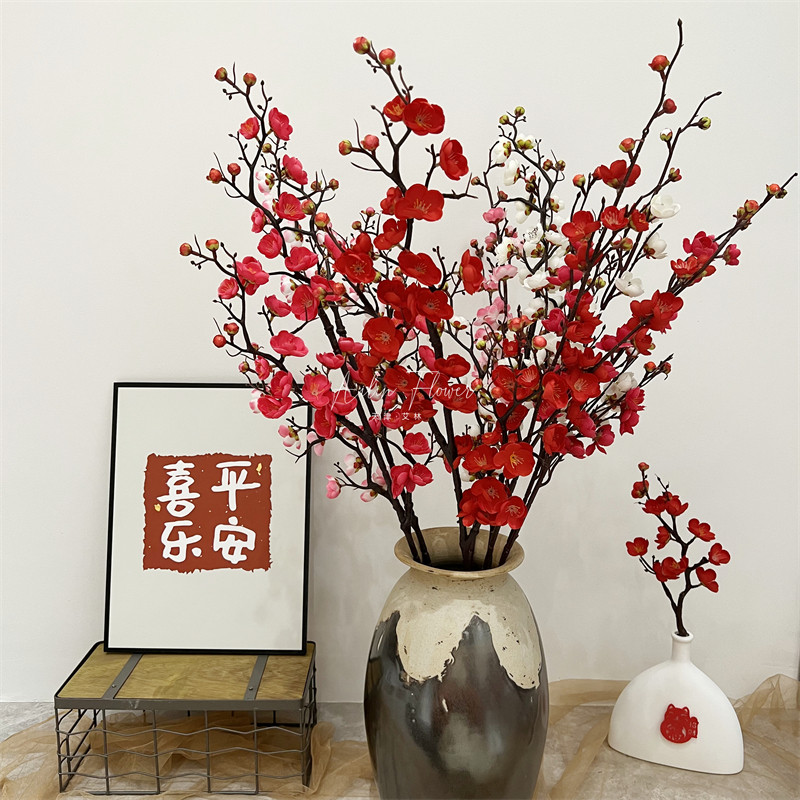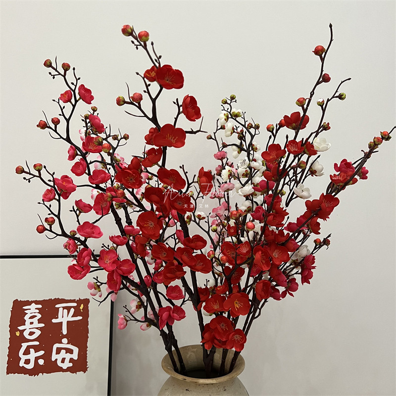 仿真梅花枝假花摆件仿真花腊梅干花桃花客厅摆设花束中式家居装饰