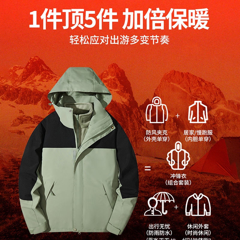 稻草人秋冬山系冲锋衣男女外套2025新款防风两件套三合一登山户外