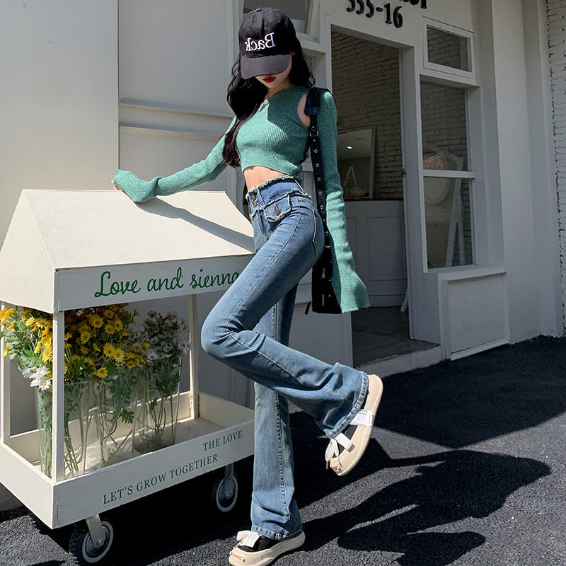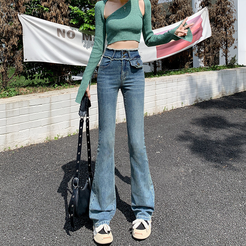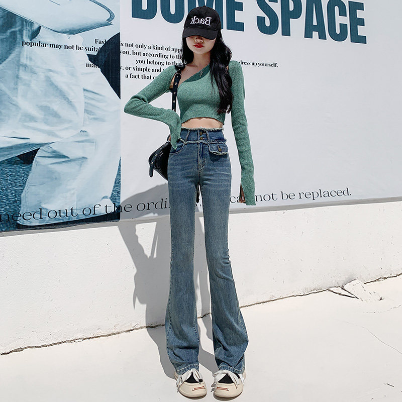 微喇牛仔裤女小个子9分喇叭裤子春秋季新款复古高腰显瘦喇叭长裤