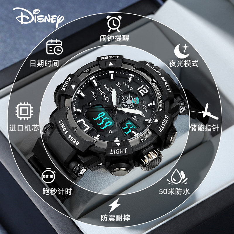 迪士尼手表电子表男款2025新款只看时间学生数字显示高颜值运动