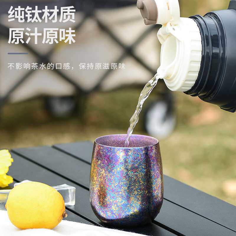 鹅蛋杯双层加厚钛杯星空彩色户外露营杯子便携式茶杯咖啡杯啤酒杯