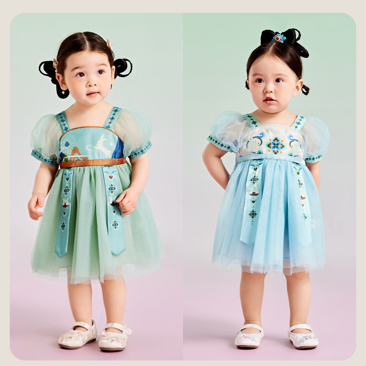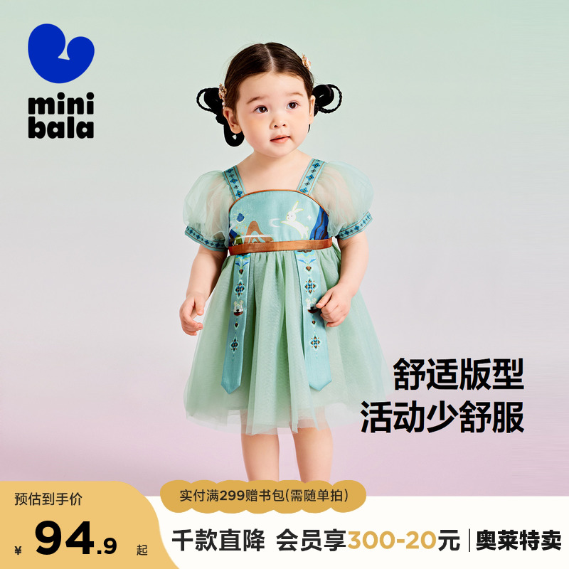 迷你巴拉巴拉女童连衣裙宝宝时尚甜美飘逸网纱国风汉服夏季公主裙