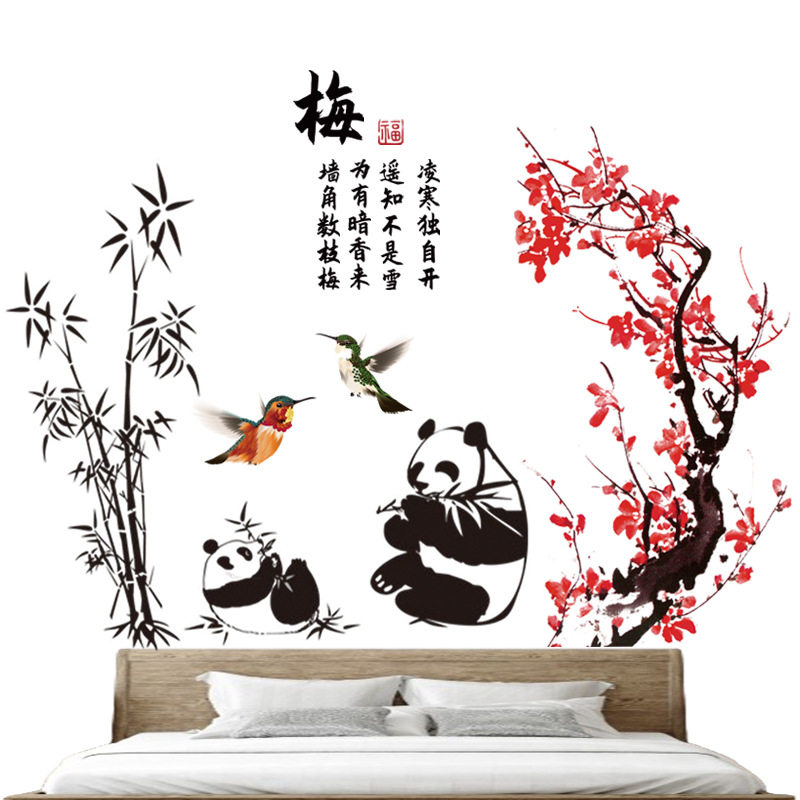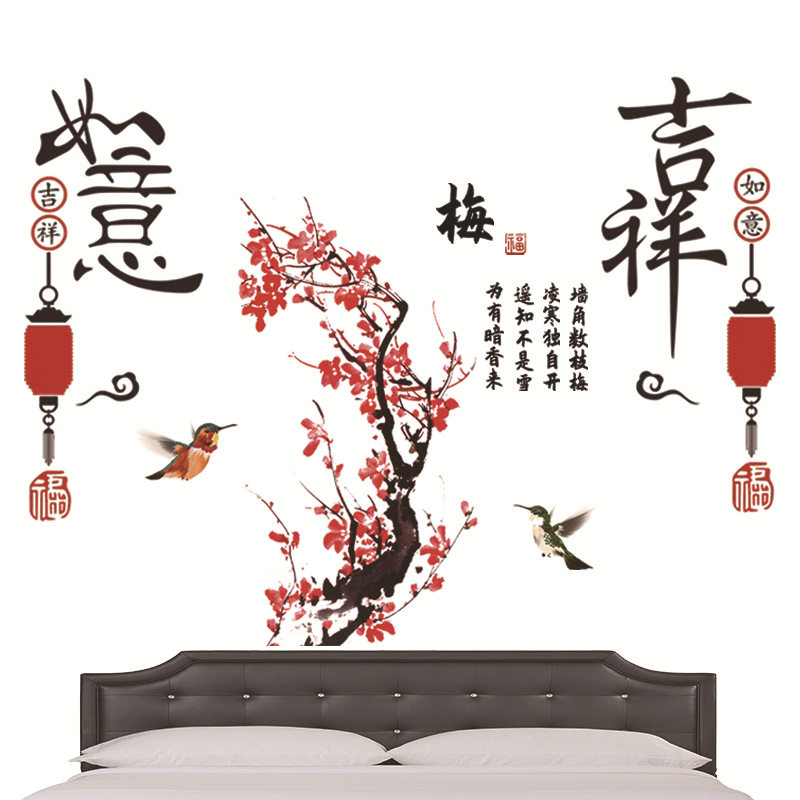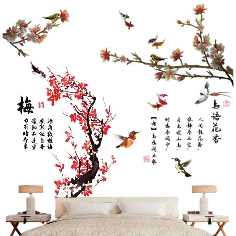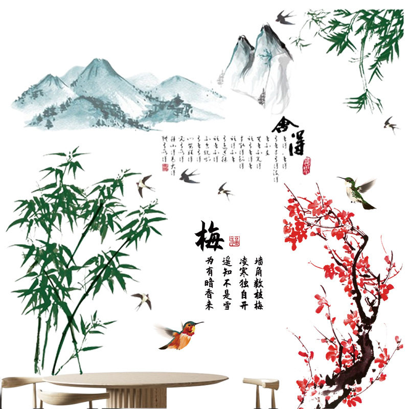 墙角数树梅墙贴纸古诗梅新中式客厅背景墙装饰贴画自粘房间书房画