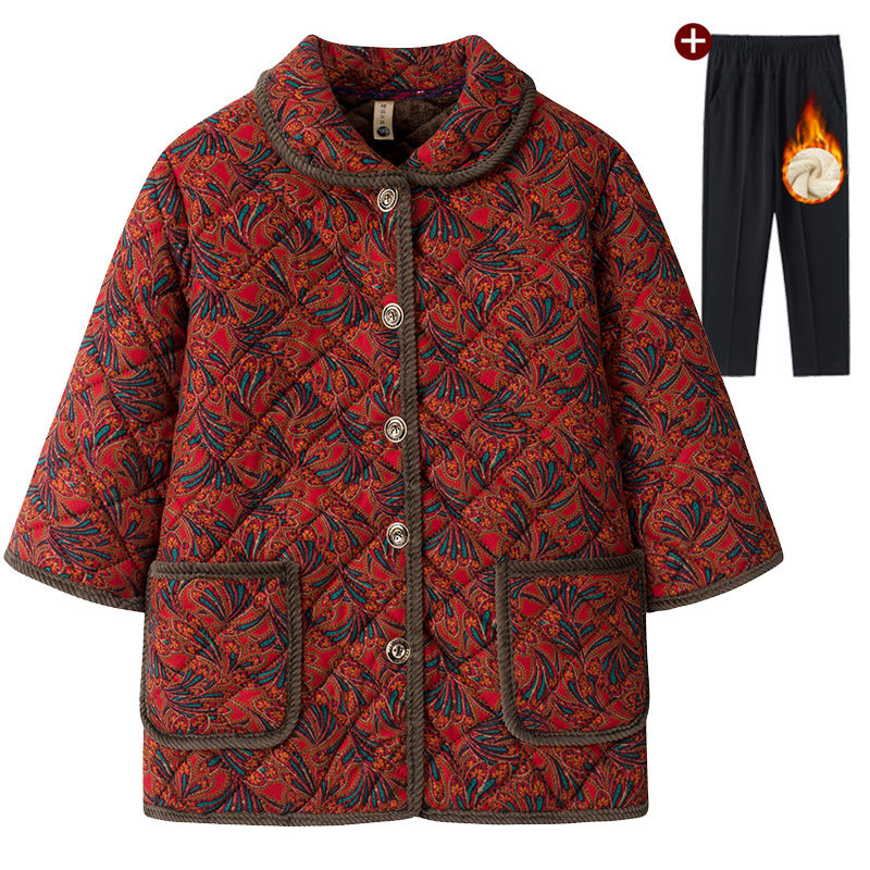冬装老年加绒棉服七分袖保暖外套女妈妈新款2025中袖棉衣奶奶棉袄