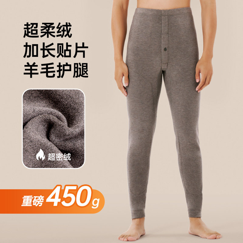 新一系裤尔热男士保暖裤羊毛双面加绒加厚贴片打底裤棉裤男