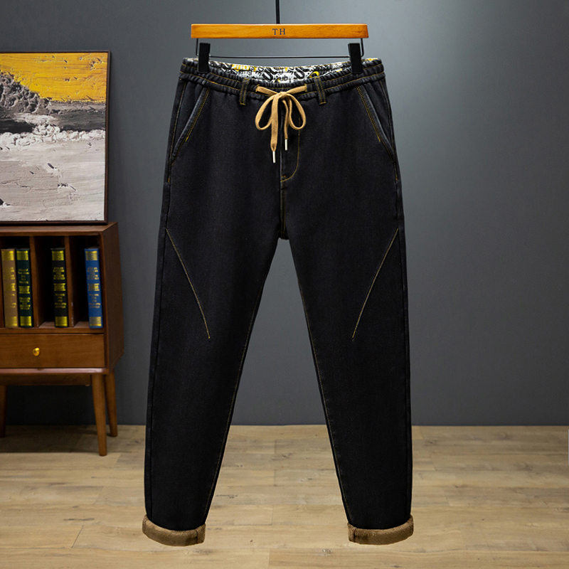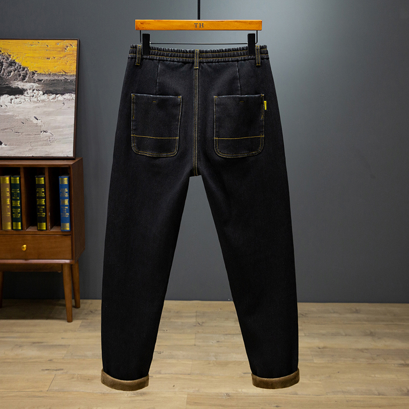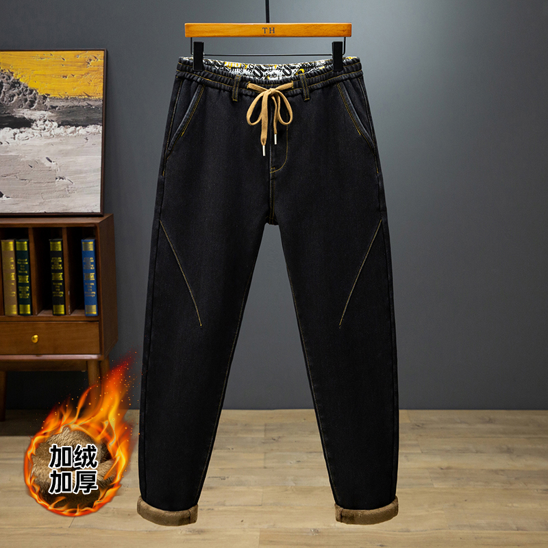秋冬款全松紧腰加绒大码牛仔裤男肥佬弹力加肥加大宽松哈伦小脚裤