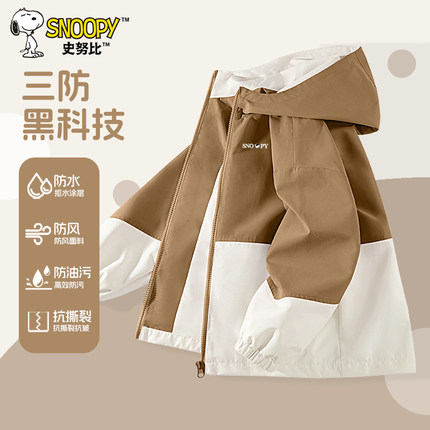 史努比男童外套春秋款男孩秋装上衣儿童夹克男大童防水冲锋衣薄