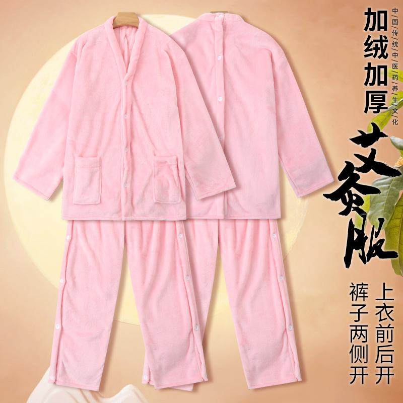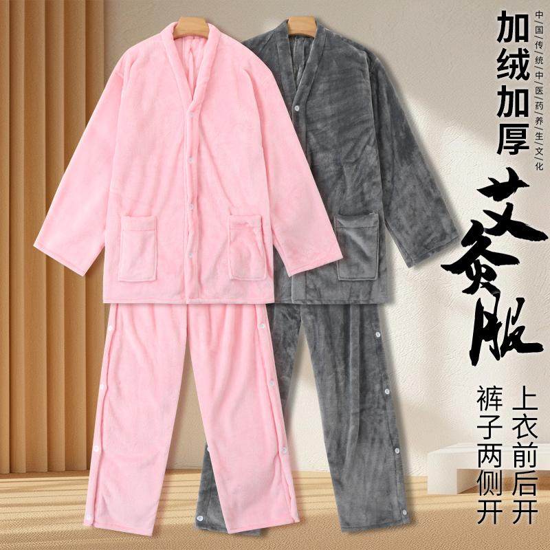 艾灸服冬季加绒特厚前后开扣家用长袖理疗开背按摩针灸拔罐男女款