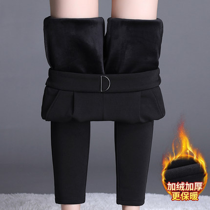 加绒休闲裤女秋冬加厚哈伦裤高腰