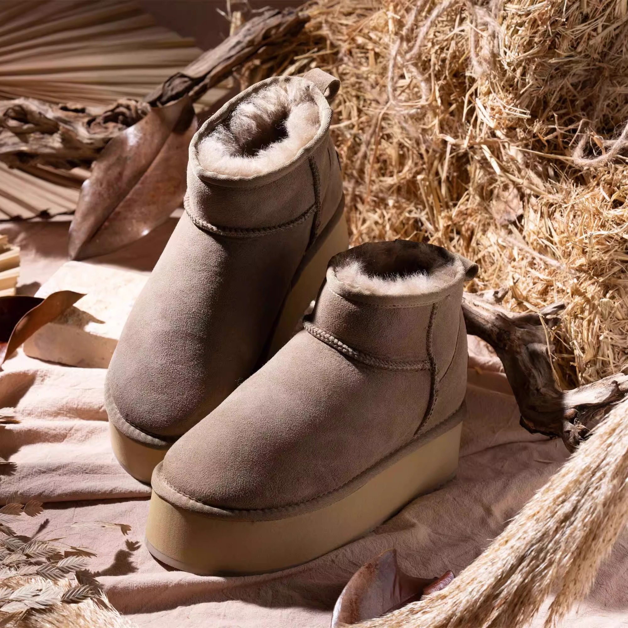 【内增高】增高10.5cm小萝莉的福音!羊皮毛一体隐形内增高雪地靴