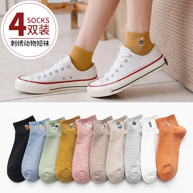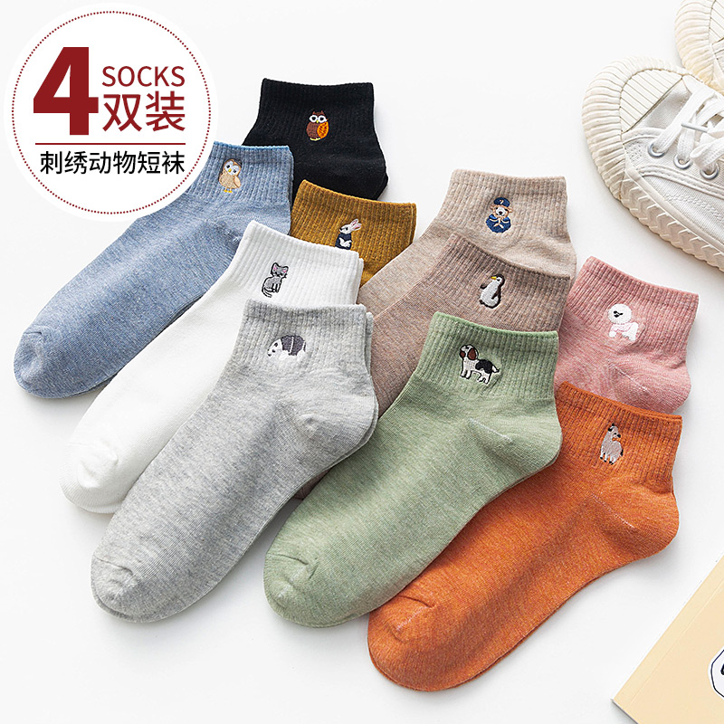 夏季棉袜袜子女中短筒浅口可爱棉袜透气ins网红款潮短袜短款春秋