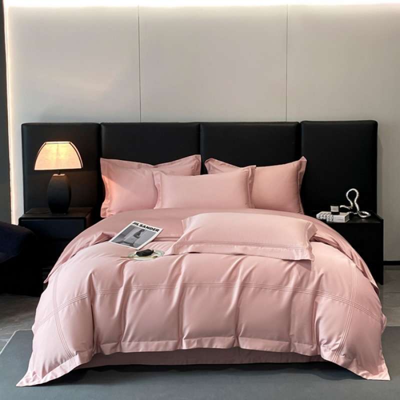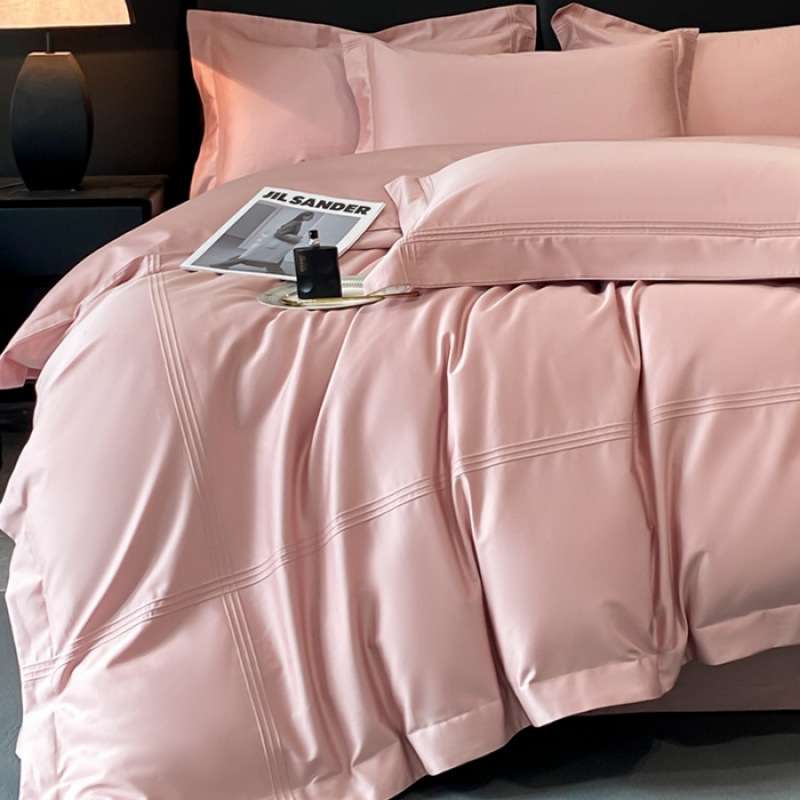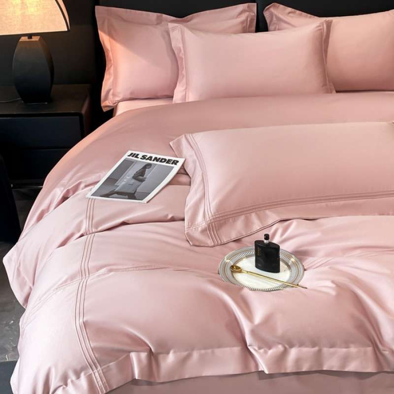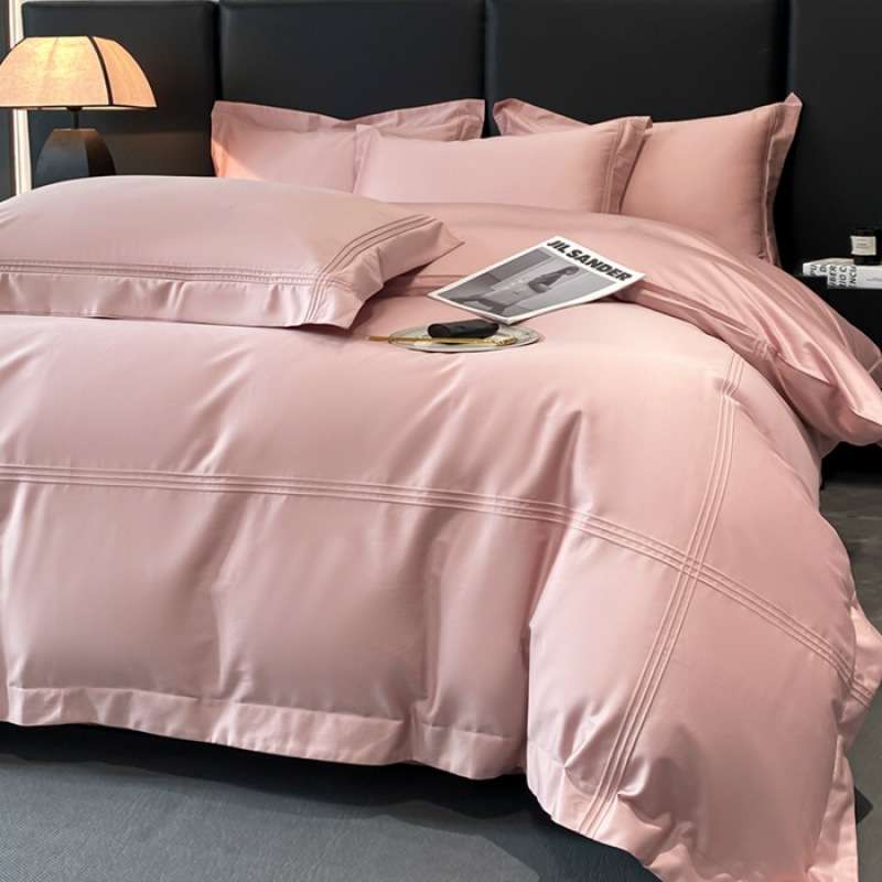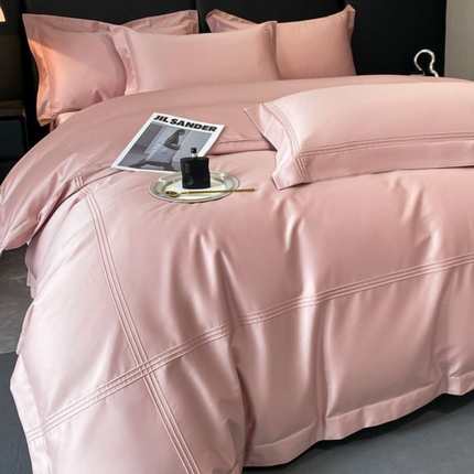 北欧风120S高支贡缎长绒棉全棉四件套简约纯色床上被套床单床笠式