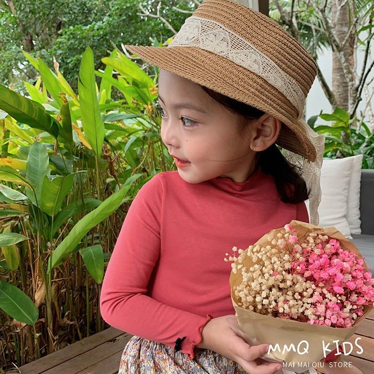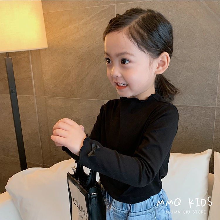 女童打底衫春装新款长袖T恤韩版洋气纯色百搭小女孩上衣