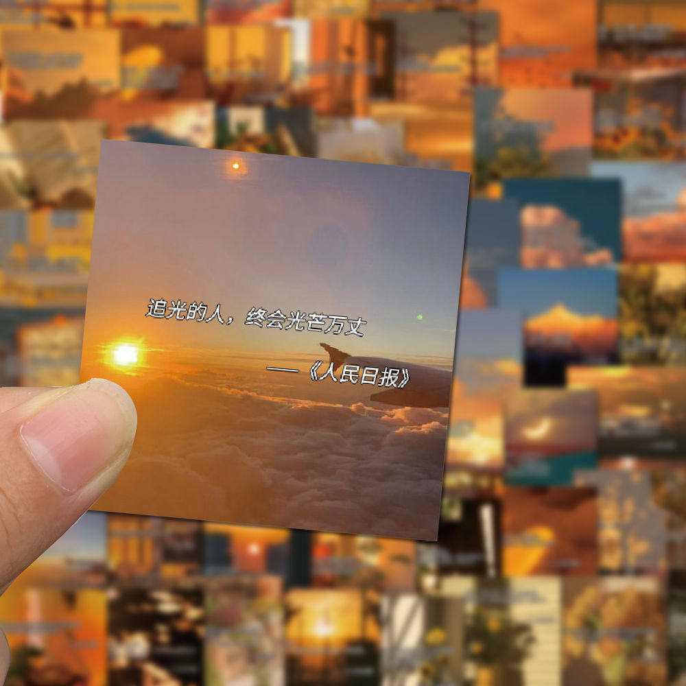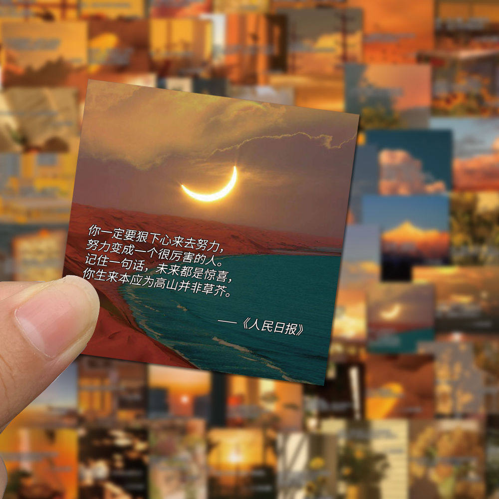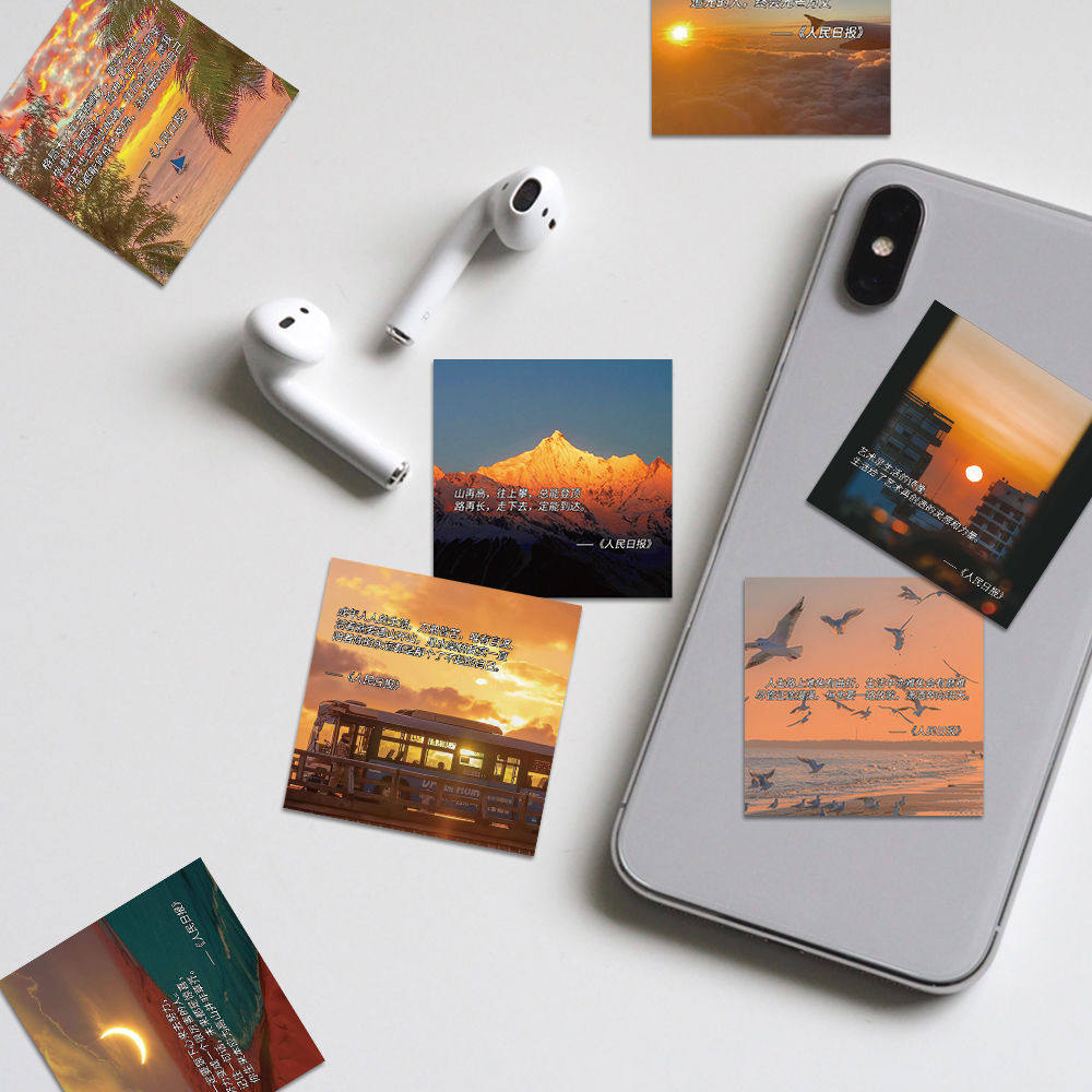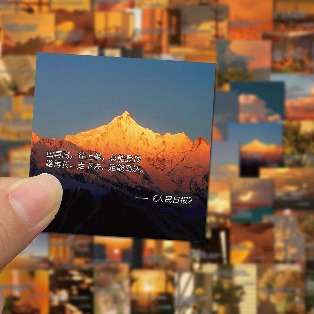 新款62张人min日报神仙金句摘抄风景贴纸励志文案治愈不重复防水