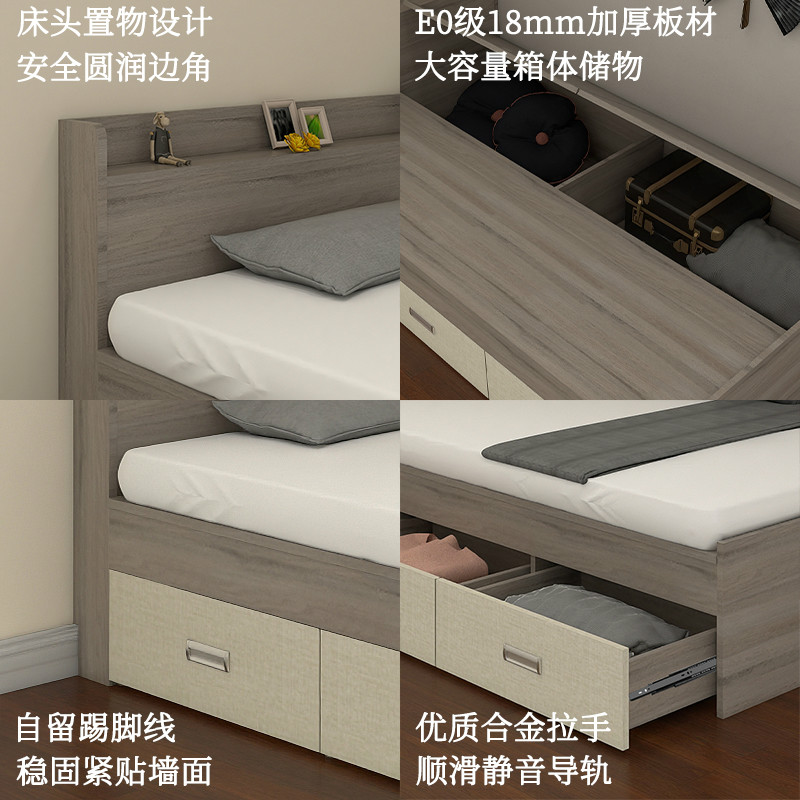 一米单人床不占空间靠墙可储物榻榻米箱体定制床一米五一米二的床