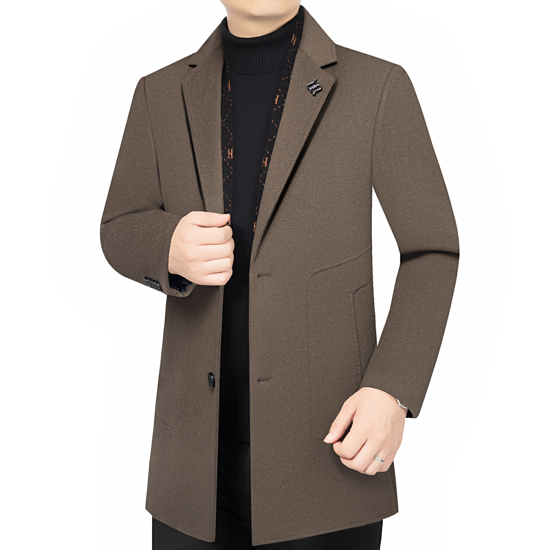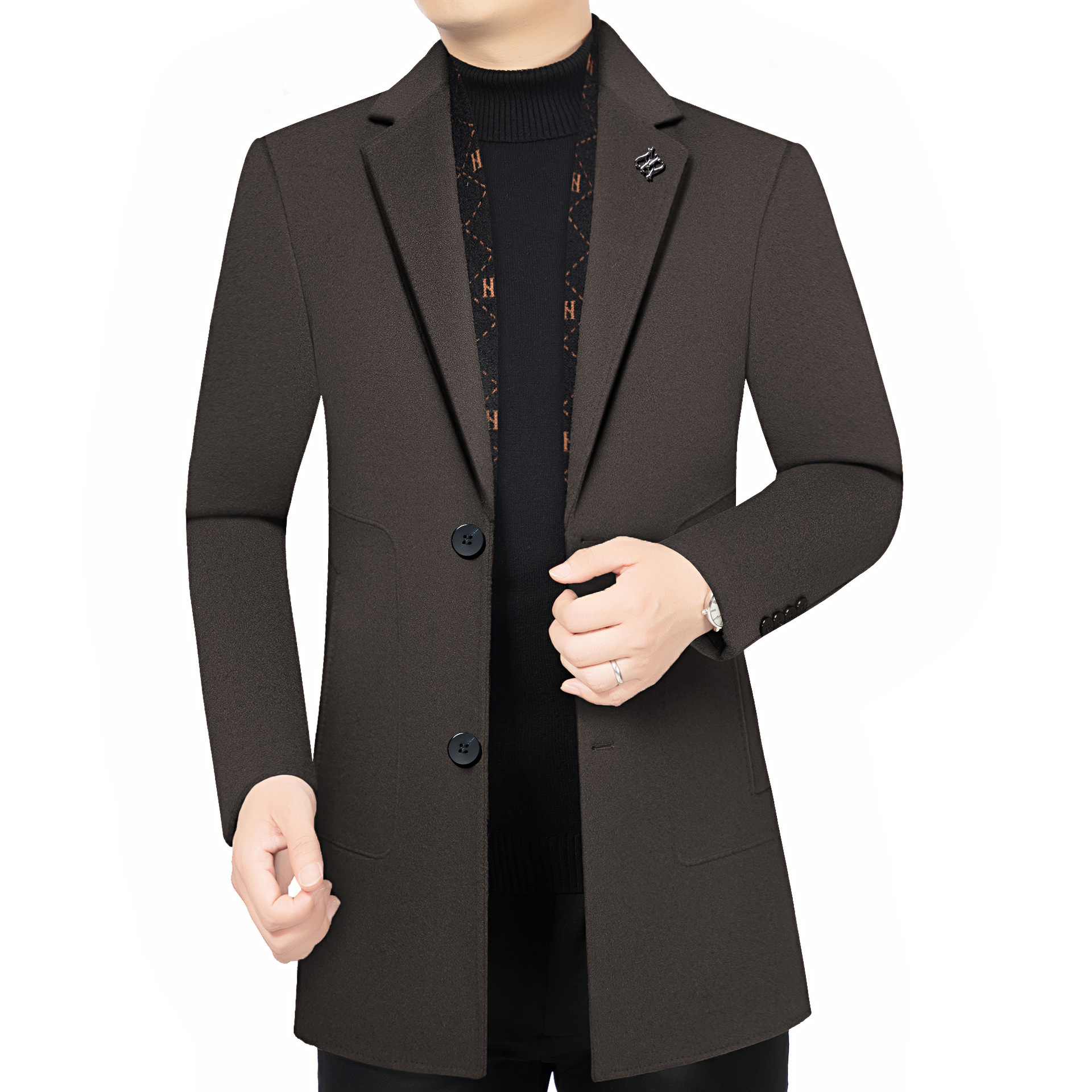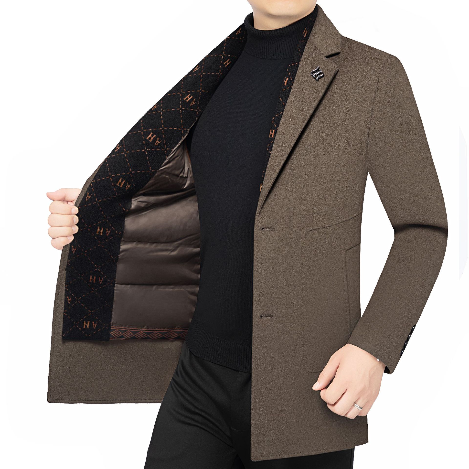 新款冬季爸爸装男装韩版修身中长款水貂毛呢羽绒大衣时尚风衣