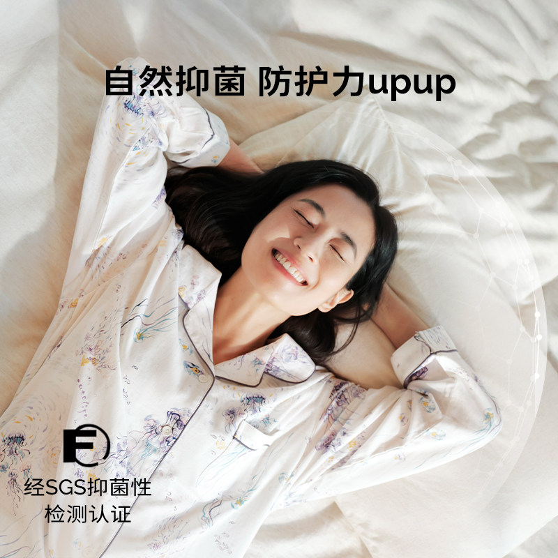 cutelife【轻羽】月子服女士长袖家居服孕妇竹棉哺乳睡衣四季套装