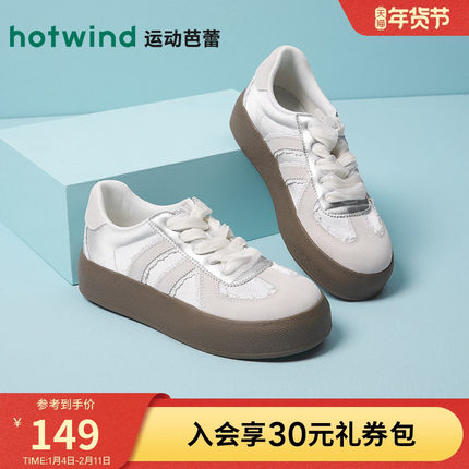 热风芭蕾风德训鞋女2025年冬季新款厚底板鞋百搭小白鞋H14W4323