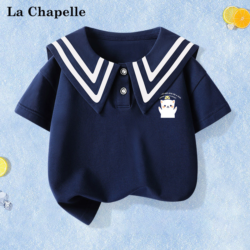 拉夏贝尔女童短袖t恤夏季儿童薄款夏装2025中大童新款海军领童装