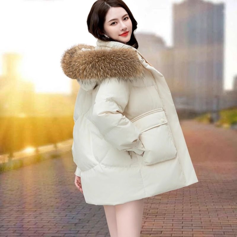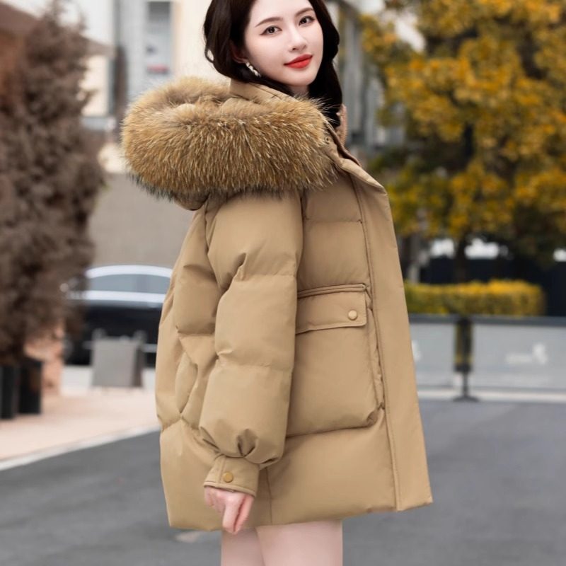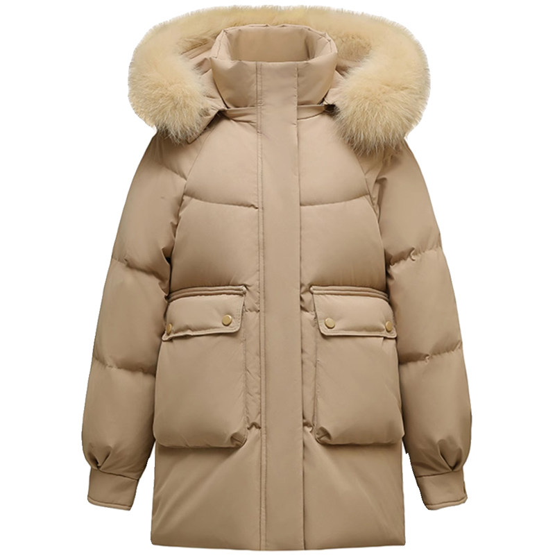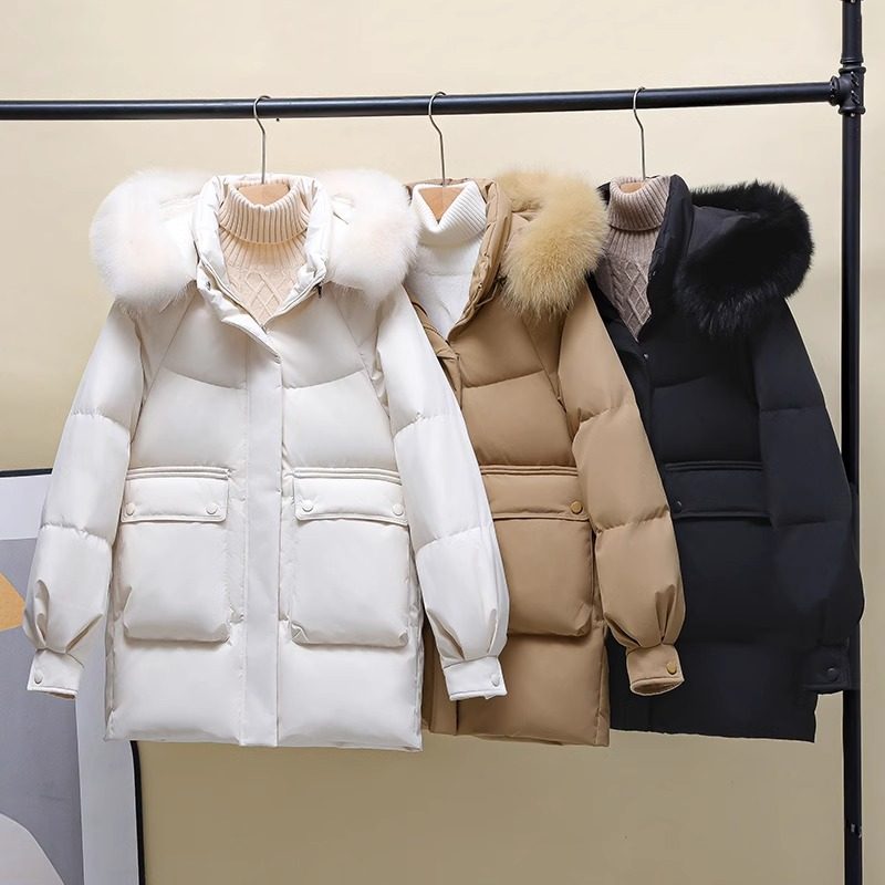 PRATOLA黑色外套2025新款狐狸毛领羽绒服女加厚保暖中长款派克服