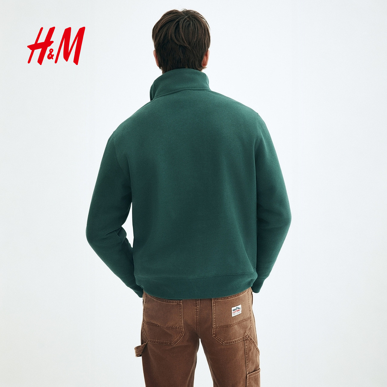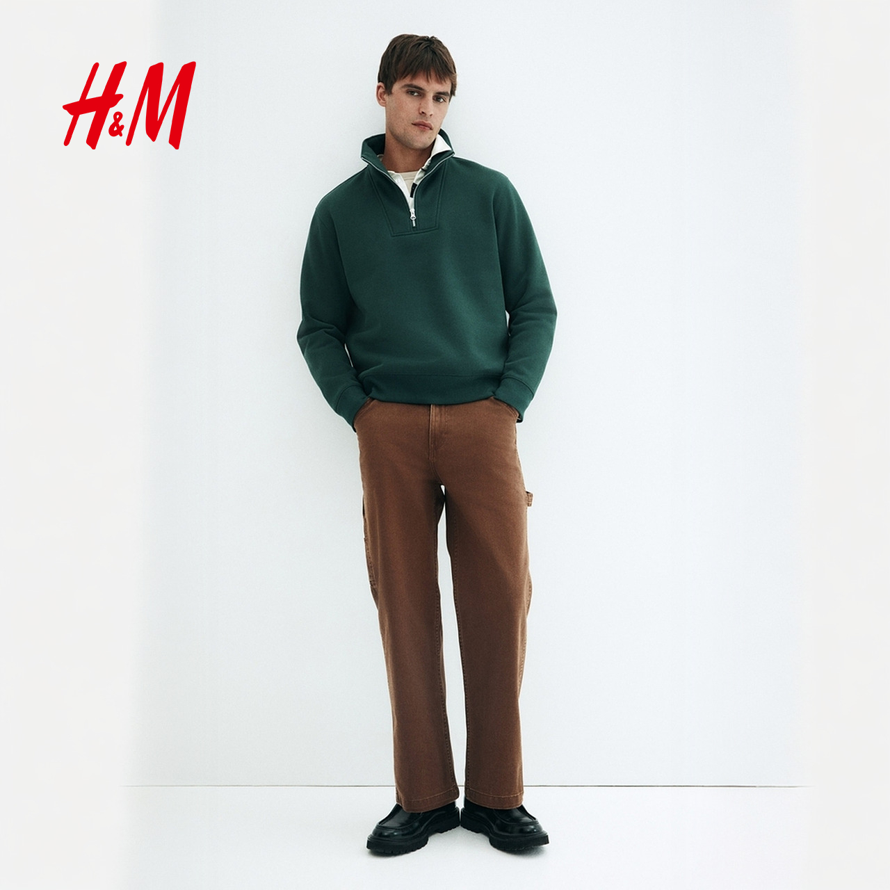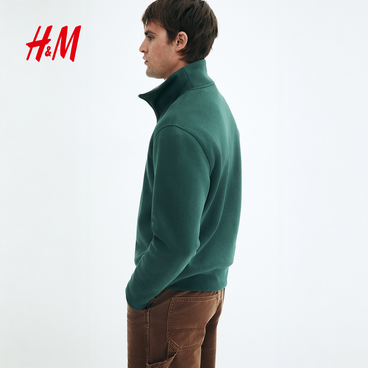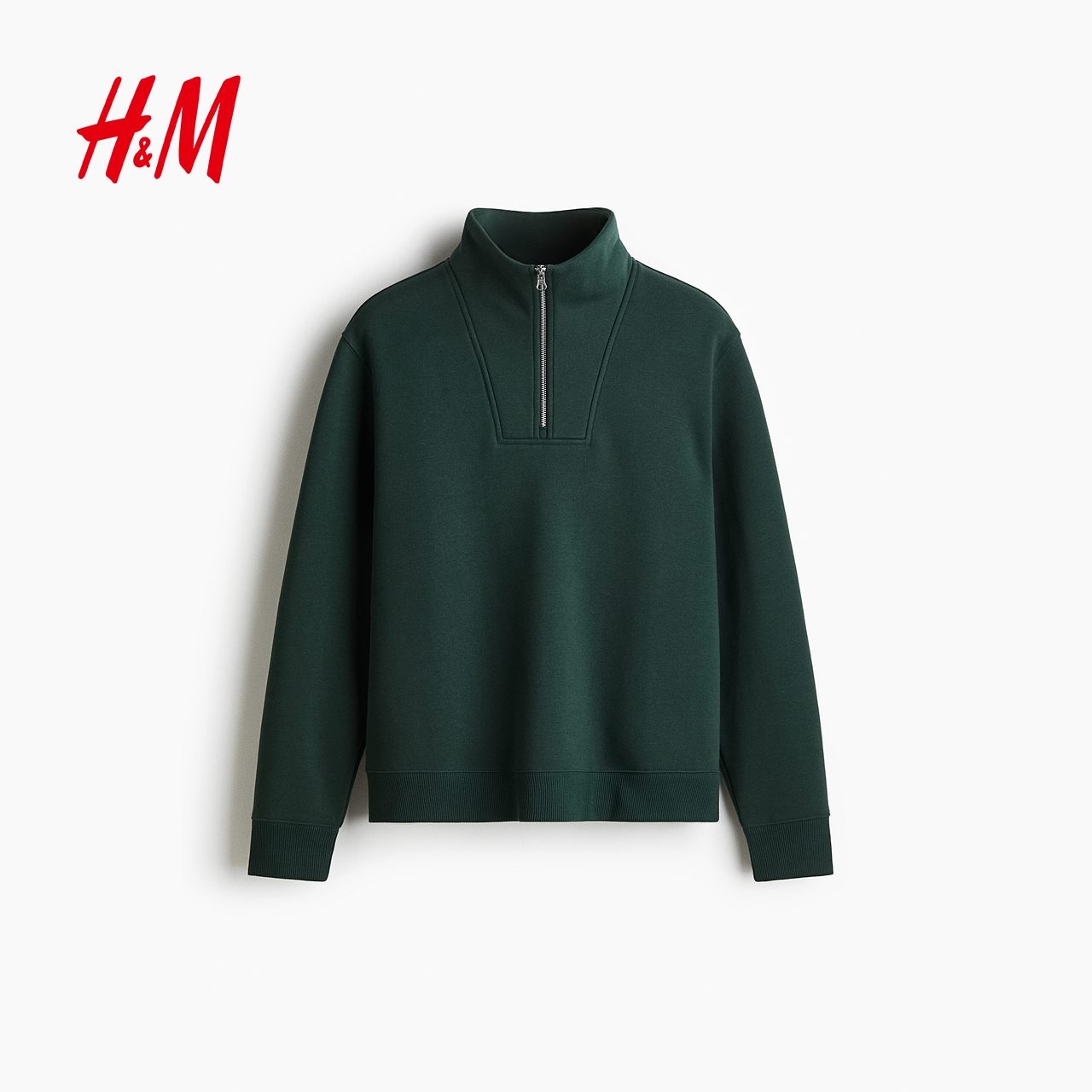 HM男装女装卫衣2025秋季新款半拉链高翻领标准版型上衣1241739